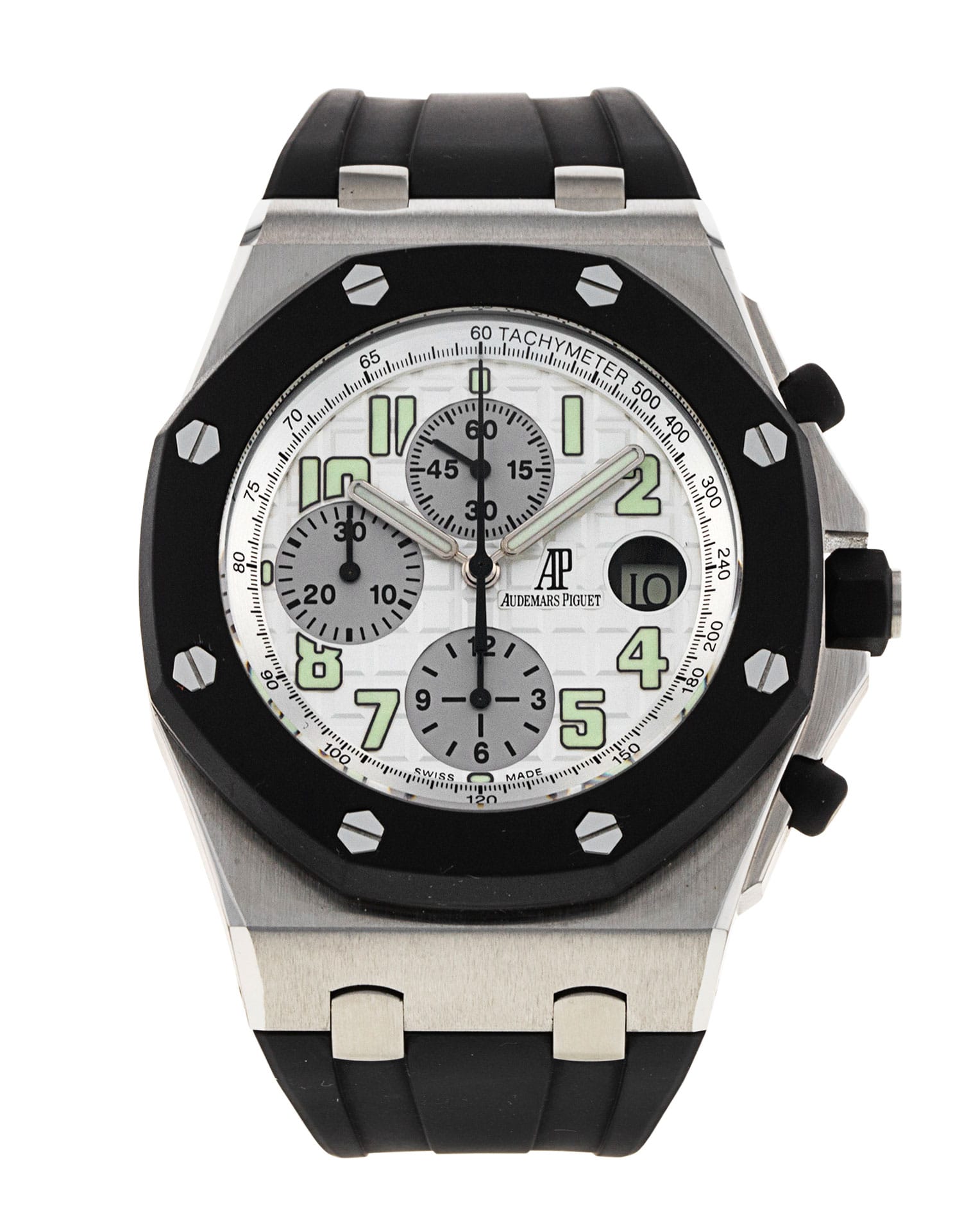 Questo Audemars Piguet Royal Oak Offshore 25940SK.OO.D002CA.02.A ha un quadrante bianco numeri arabi e un cinturino in gomma. Questo Audemars Piguet è stato sottoposto a un'accurata ispezione di accuratezza, funzionalità e condizioni presso il nostro centro di assistenza certificato Audemars Piguet per determinare il livello di ricondizionamento richiesto per soddisfare i nostri rigorosi standard. È stato inoltre verificato nei nostri registri per garantirne l'autenticità. Tutti i nostri orologi hanno una garanzia di 24 mesi per la tua tranquillità.