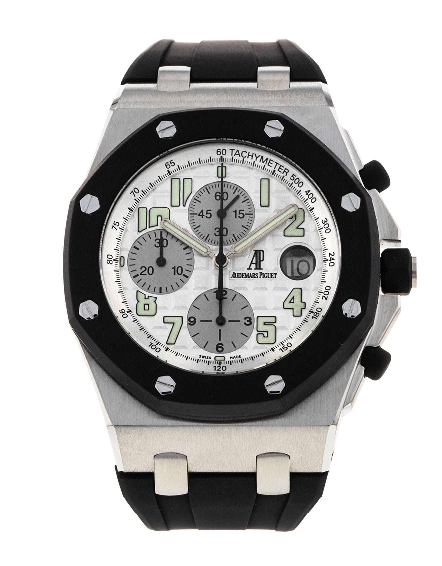 Questo Audemars Piguet Royal Oak Offshore 25940SK.OO.D002CA.02.A ha un quadrante bianco numeri arabi e un cinturino in gomma. Questo Audemars Piguet è stato sottoposto a un'accurata ispezione di accuratezza, funzionalità e condizioni presso il nostro centro di assistenza certificato Audemars Piguet per determinare il livello di ricondizionamento richiesto per soddisfare i nostri rigorosi standard. È stato inoltre verificato nei nostri registri per garantirne l'autenticità. Tutti i nostri orologi hanno una garanzia di 24 mesi per la tua tranquillità.