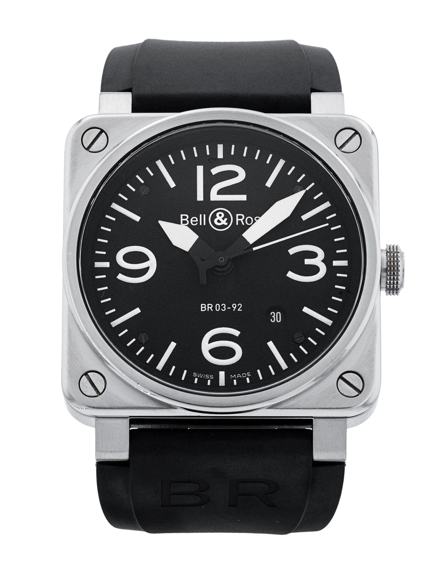 Questo Bell and Ross BR03-92 BR03-92 ha un quadrante nero quadrante numeri arabi e un cinturino in gomma. Questo Bell and Ross è stato sottoposto a un'accurata ispezione di resistenza all'acqua, precisione, funzionalità e condizioni per determinare il livello di ricondizionamento richiesto per soddisfare i nostri rigorosi standard. È stato anche referenziato rispetto a documenti tecnici e registri del produttore, ove disponibili, per garantire l'autenticità e una cronologia pulita. Tutti i nostri orologi hanno una garanzia di 24 mesi per la tua tranquillità.