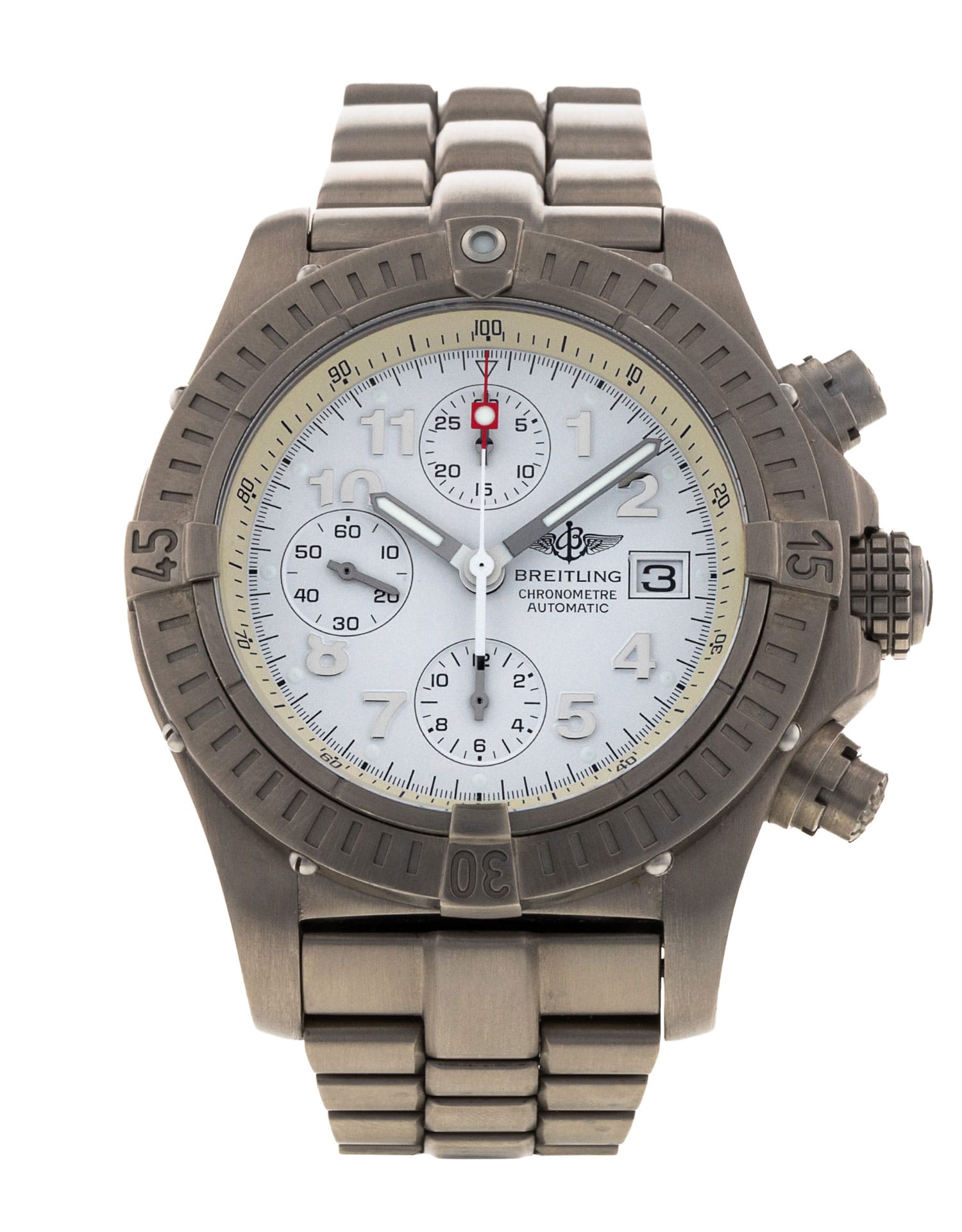 Questo Breitling Chrono Avenger E13360 ha un quadrante bianco numeri arabi e un cinturino in bracciale. Questo Breitling è stato sottoposto a un'accurata ispezione di resistenza all'acqua, precisione, funzionalità e condizioni per determinare il livello di ricondizionamento richiesto per soddisfare i nostri rigorosi standard. È stato anche referenziato rispetto a documenti tecnici e registri del produttore, ove disponibili, per garantire l'autenticità e una cronologia pulita. Tutti i nostri orologi hanno una garanzia di 24 mesi per la tua tranquillità.