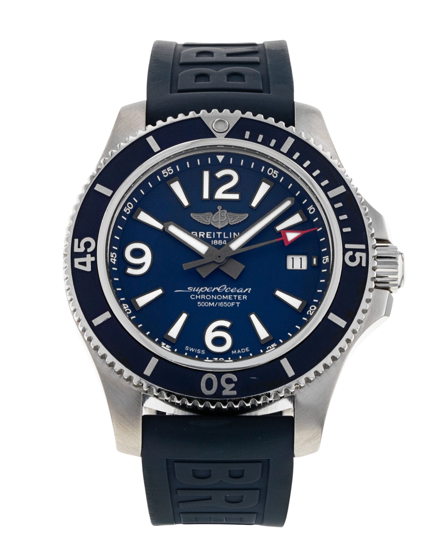 Questo Breitling SuperOcean Automatic A17366 ha un quadrante blu quarter numeri arabi e un cinturino in gomma. Questo Breitling è stato sottoposto a un'accurata ispezione di resistenza all'acqua, precisione, funzionalità e condizioni per determinare il livello di ricondizionamento richiesto per soddisfare i nostri rigorosi standard. È stato anche referenziato rispetto a documenti tecnici e registri del produttore, ove disponibili, per garantire l'autenticità e una cronologia pulita. Tutti i nostri orologi hanno una garanzia di 24 mesi per la tua tranquillità.