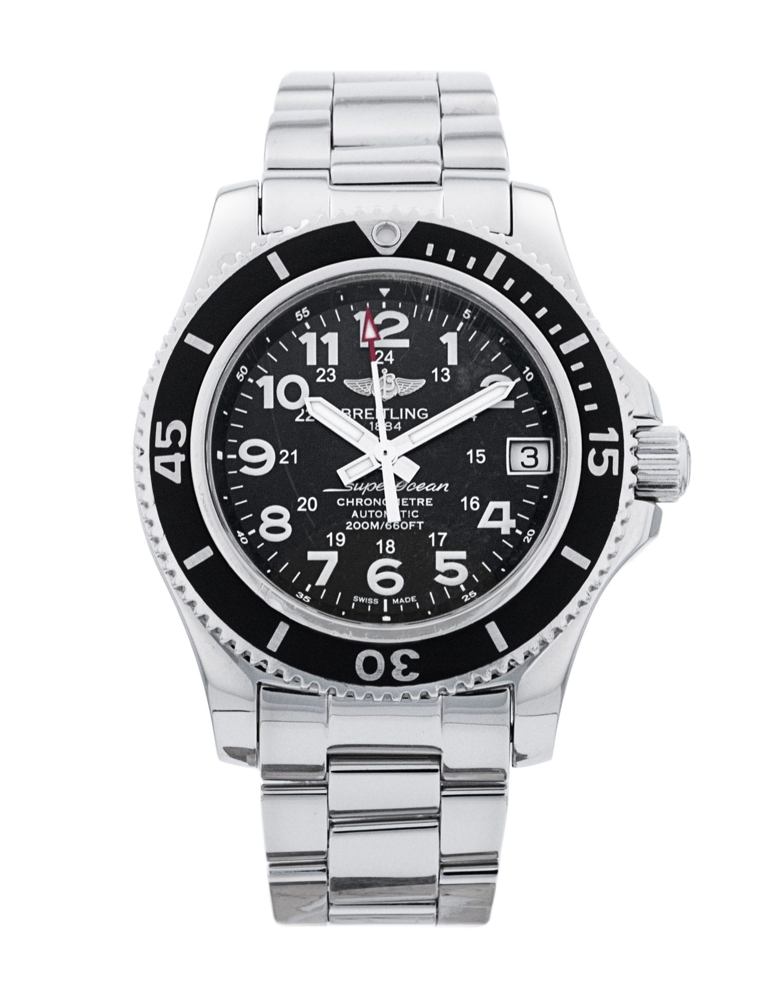 Questo Breitling SuperOcean II 36 A17312 ha un quadrante nero numeri arabi e un cinturino in bracciale. Questo Breitling è stato sottoposto a un'accurata ispezione di resistenza all'acqua, precisione, funzionalità e condizioni per determinare il livello di ricondizionamento richiesto per soddisfare i nostri rigorosi standard. È stato anche referenziato rispetto a documenti tecnici e registri del produttore, ove disponibili, per garantire l'autenticità e una cronologia pulita. Tutti i nostri orologi hanno una garanzia di 24 mesi per la tua tranquillità.