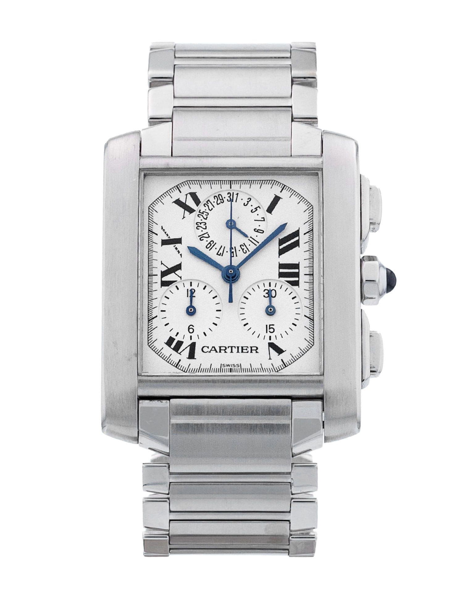 Questo Cartier Chronoflex W51001Q3 ha un quadrante bianco numeri romani e un cinturino in bracciale. Questo Cartier è stato sottoposto a un'accurata ispezione di accuratezza, funzionalità e condizioni presso il nostro centro di assistenza certificato Cartier per determinare il livello di ricondizionamento richiesto per soddisfare i nostri rigorosi standard. È stato inoltre verificato nei nostri registri per garantirne l'autenticità. Tutti i nostri orologi hanno una garanzia di 24 mesi per la tua tranquillità.