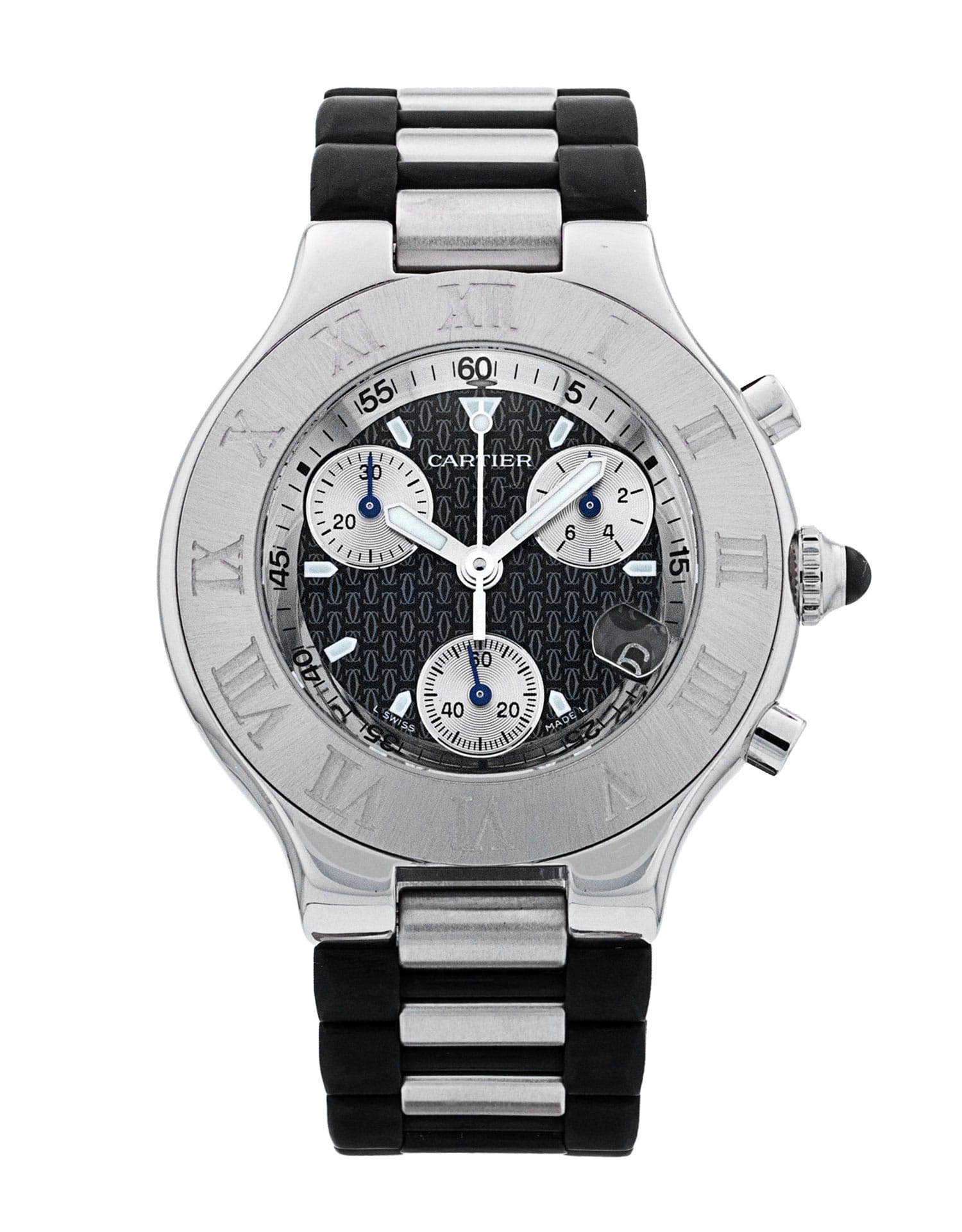 Questo Cartier Must 21 W10125U2 ha un quadrante nero baton e un cinturino in gomma. Questo Cartier è stato sottoposto a un'accurata ispezione di accuratezza, funzionalità e condizioni presso il nostro centro di assistenza certificato Cartier per determinare il livello di ricondizionamento richiesto per soddisfare i nostri rigorosi standard. È stato inoltre verificato nei nostri registri per garantirne l'autenticità. Tutti i nostri orologi hanno una garanzia di 24 mesi per la tua tranquillità.