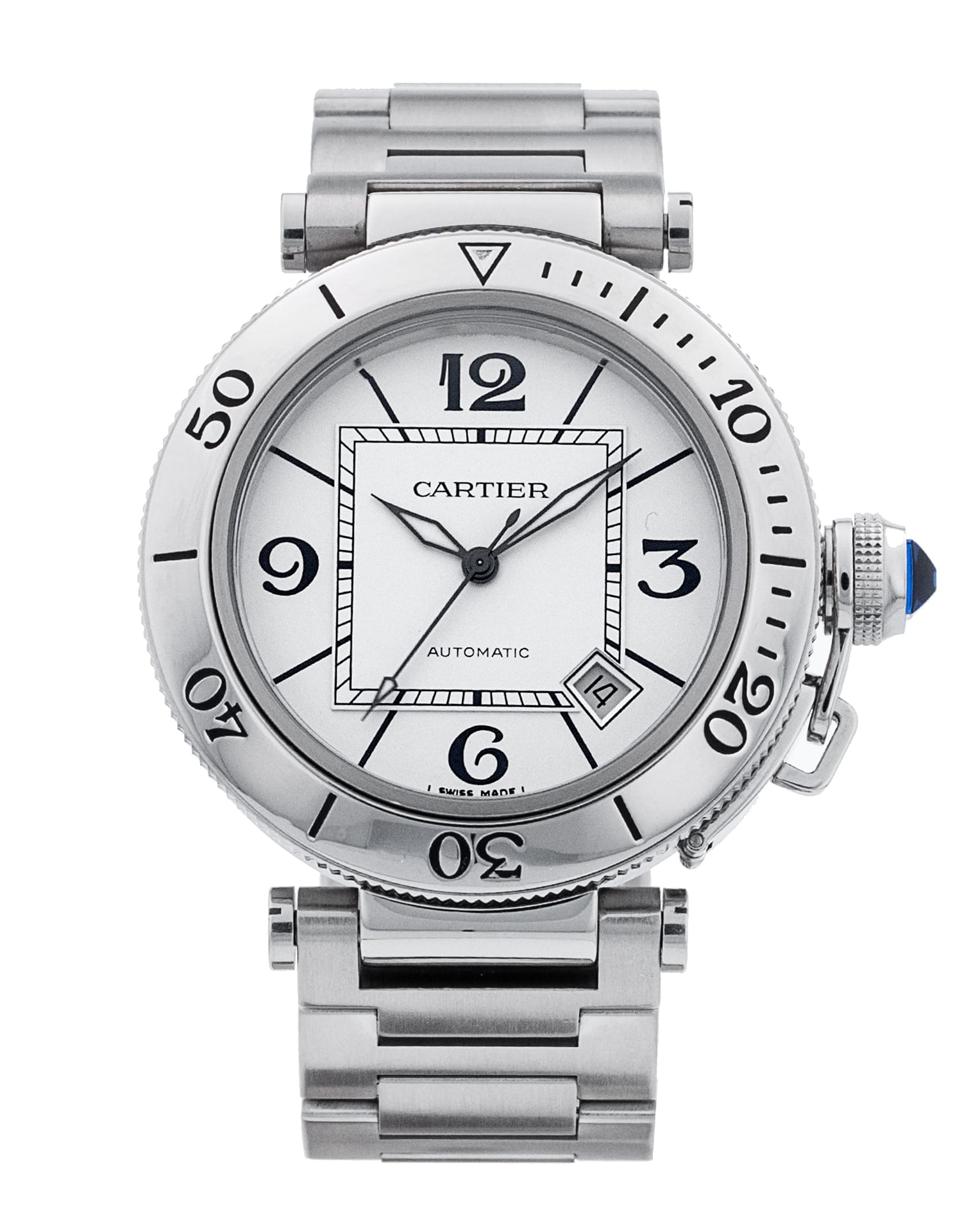 Questo Cartier Pasha W31080M7 ha un quadrante argento quadrante numeri arabi e un cinturino in bracciale. Questo Cartier è stato sottoposto a un'accurata ispezione di accuratezza, funzionalità e condizioni presso il nostro centro di assistenza certificato Cartier per determinare il livello di ricondizionamento richiesto per soddisfare i nostri rigorosi standard. È stato inoltre verificato nei nostri registri per garantirne l'autenticità. Tutti i nostri orologi hanno una garanzia di 24 mesi per la tua tranquillità.