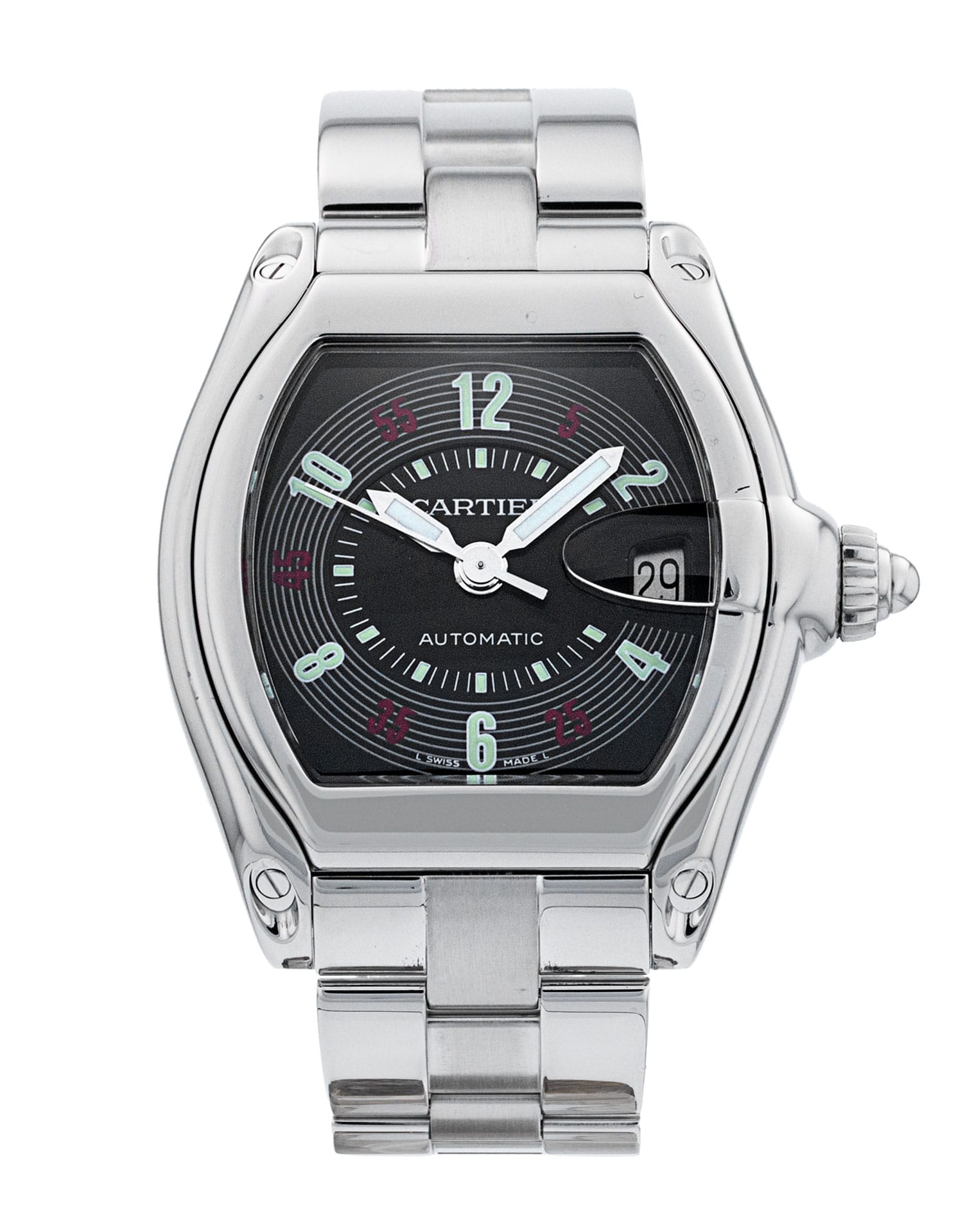 Questo Cartier Roadster W62002V3 ha un quadrante nero numeri arabi e un cinturino in bracciale. Questo Cartier è stato sottoposto a un'accurata ispezione di accuratezza, funzionalità e condizioni presso il nostro centro di assistenza certificato Cartier per determinare il livello di ricondizionamento richiesto per soddisfare i nostri rigorosi standard. È stato inoltre verificato nei nostri registri per garantirne l'autenticità. Tutti i nostri orologi hanno una garanzia di 24 mesi per la tua tranquillità.