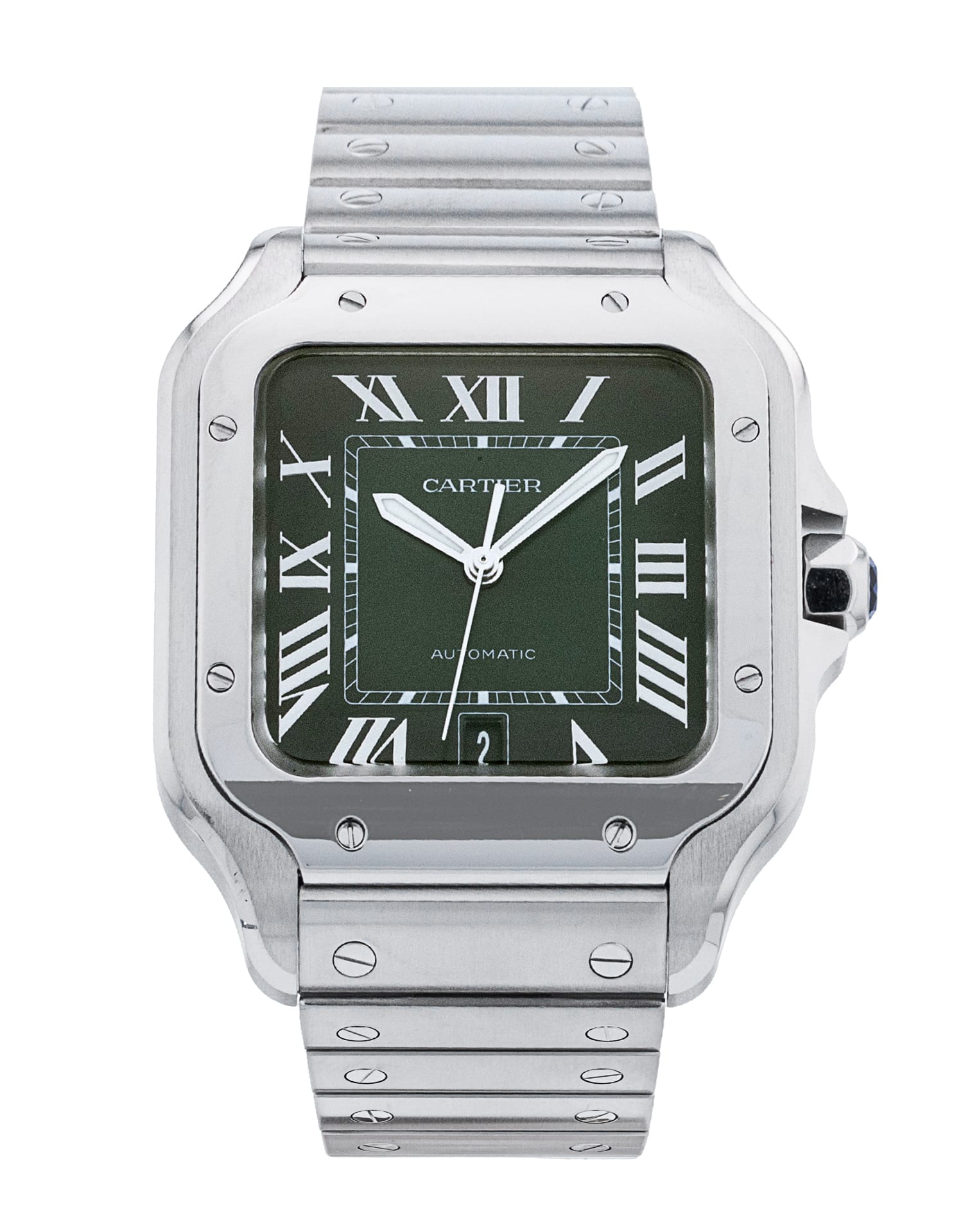 Questo Cartier Santos De Cartier WSSA0062 ha un quadrante green roman numeral e un cinturino in bracciale. Questo Cartier è stato sottoposto a un'accurata ispezione di accuratezza, funzionalità e condizioni presso il nostro centro di assistenza certificato Cartier per determinare il livello di ricondizionamento richiesto per soddisfare i nostri rigorosi standard. È stato inoltre verificato nei nostri registri per garantirne l'autenticità. Tutti i nostri orologi hanno una garanzia di 24 mesi per la tua tranquillità.