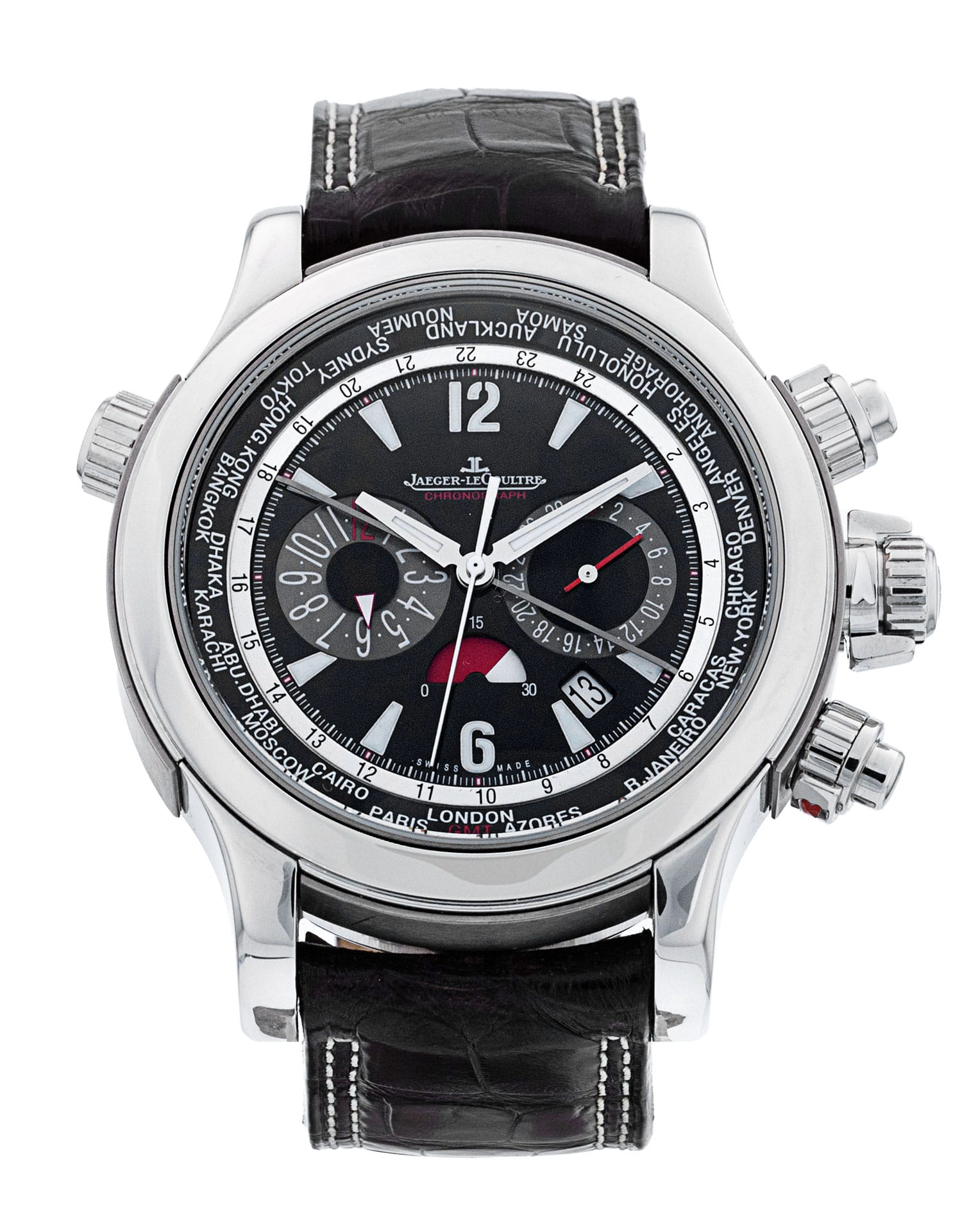 Questo Jaeger-LeCoultre Extreme World Chronograph 1768470 ha un quadrante nero quadrante numeri arabi e un cinturino in pelle. Questo Jaeger-LeCoultre è stato sottoposto a un'accurata ispezione di accuratezza, funzionalità e condizioni presso il nostro centro di assistenza certificato Jaeger-LeCoultre per determinare il livello di ricondizionamento richiesto per soddisfare i nostri rigorosi standard. È stato inoltre verificato nei nostri registri per garantirne l'autenticità. Tutti i nostri orologi hanno una garanzia di 24 mesi per la tua tranquillità.