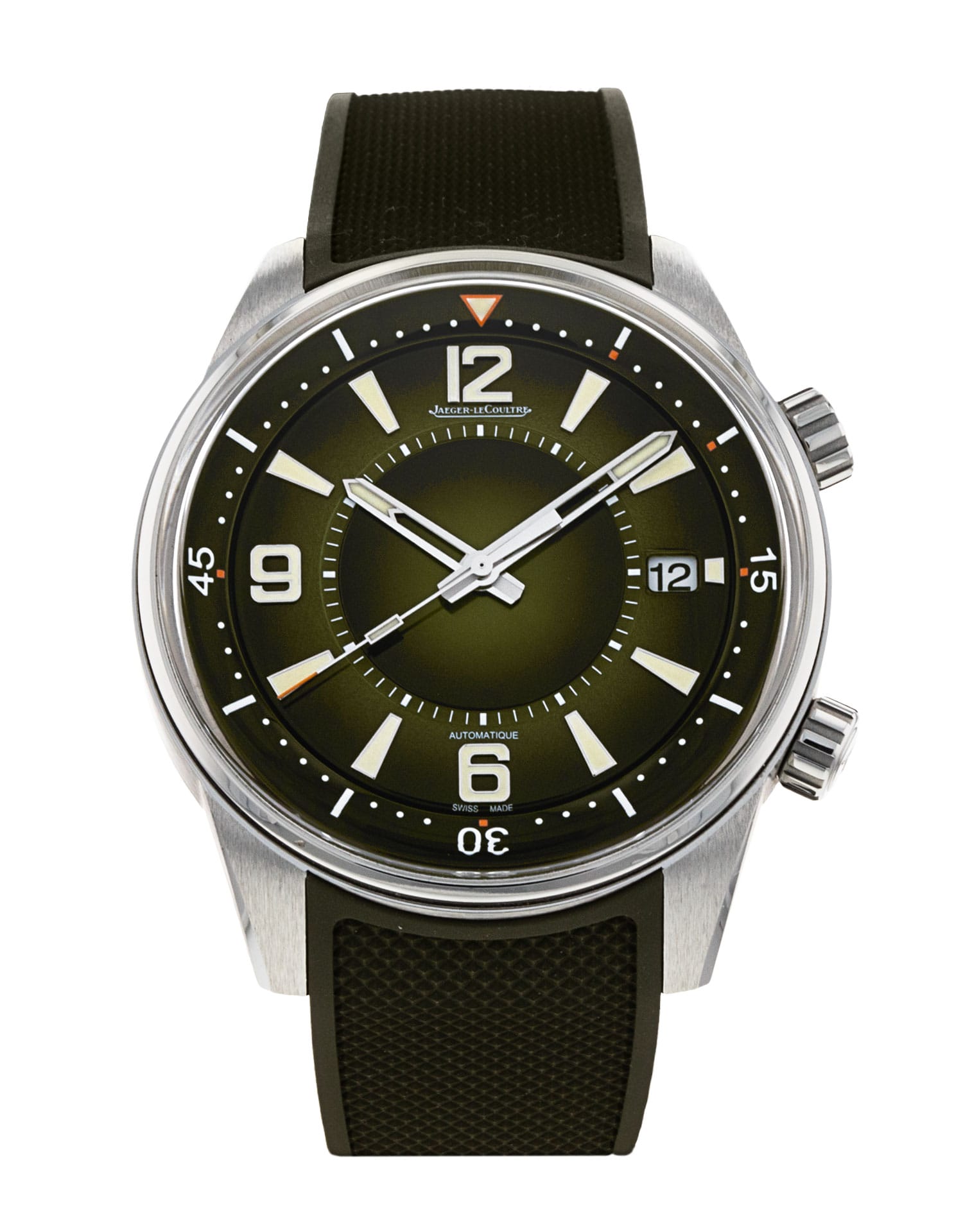 Questo Jaeger-LeCoultre Polaris 906863J ha un quadrante verde quadrante numeri arabi e un cinturino in gomma. Questo Jaeger-LeCoultre è stato sottoposto a un'accurata ispezione di accuratezza, funzionalità e condizioni presso il nostro centro di assistenza certificato Jaeger-LeCoultre per determinare il livello di ricondizionamento richiesto per soddisfare i nostri rigorosi standard. È stato inoltre verificato nei nostri registri per garantirne l'autenticità. Tutti i nostri orologi hanno una garanzia di 24 mesi per la tua tranquillità.