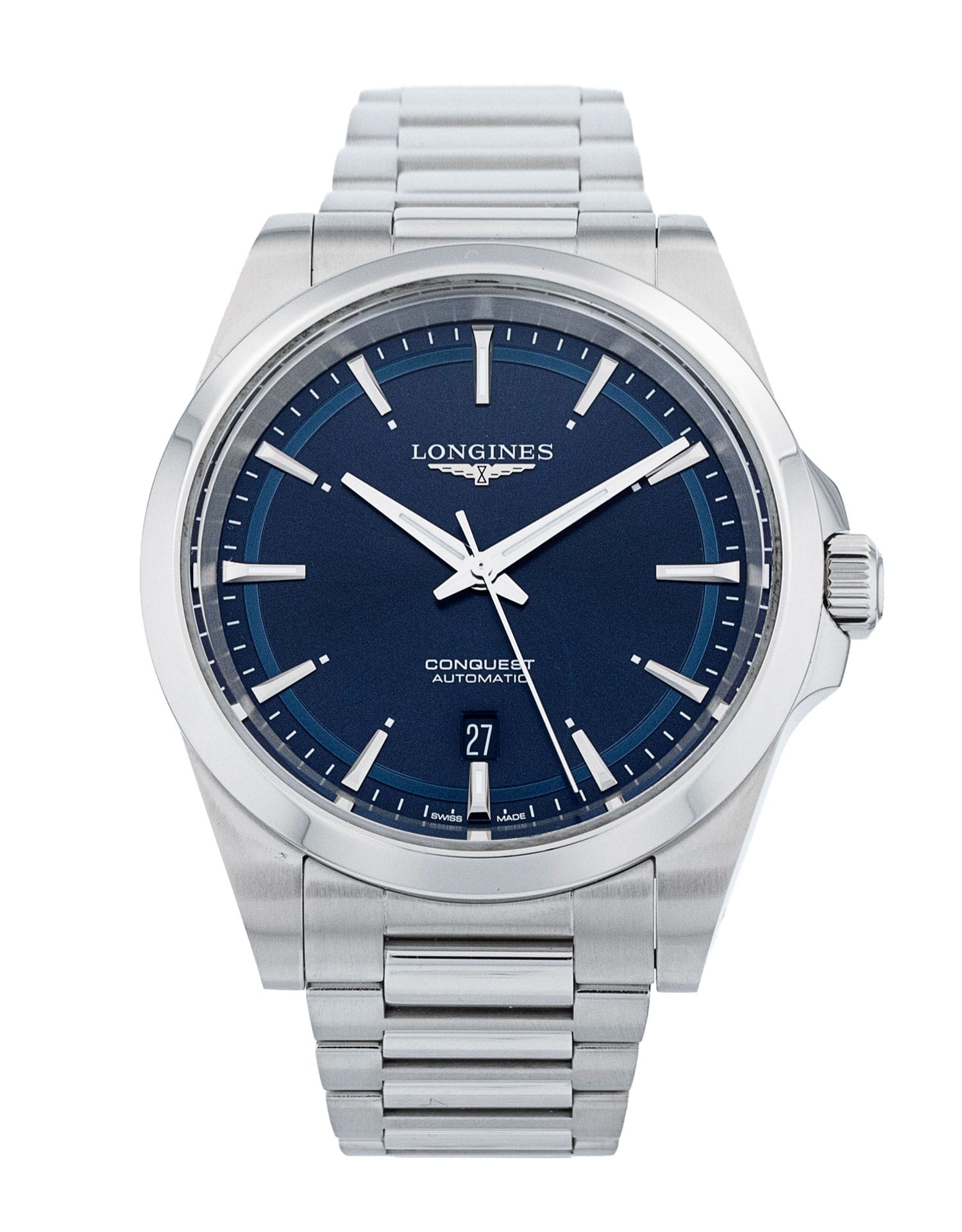 Questo Longines Conquest L3.830.4.92.6 ha un quadrante blu baton e un cinturino in bracciale. Questo Longines è stato sottoposto a un'accurata ispezione di accuratezza, funzionalità e condizioni presso il nostro centro di assistenza certificato Longines per determinare il livello di ricondizionamento richiesto per soddisfare i nostri rigorosi standard. È stato inoltre verificato nei nostri registri per garantirne l'autenticità. Tutti i nostri orologi hanno una garanzia di 24 mesi per la tua tranquillità.