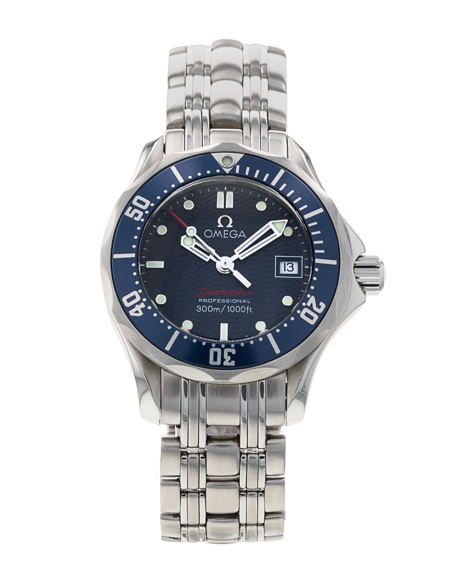 Questo Omega Seamaster 300m Ladies 2224.80.00 ha un quadrante blu baton e un cinturino in bracciale. Questo Omega è stato sottoposto a un'accurata ispezione di accuratezza, funzionalità e condizioni presso il nostro centro di assistenza certificato Omega per determinare il livello di ricondizionamento richiesto per soddisfare i nostri rigorosi standard. È stato inoltre verificato nei nostri registri per garantirne l'autenticità. Tutti i nostri orologi hanno una garanzia di 24 mesi per la tua tranquillità.