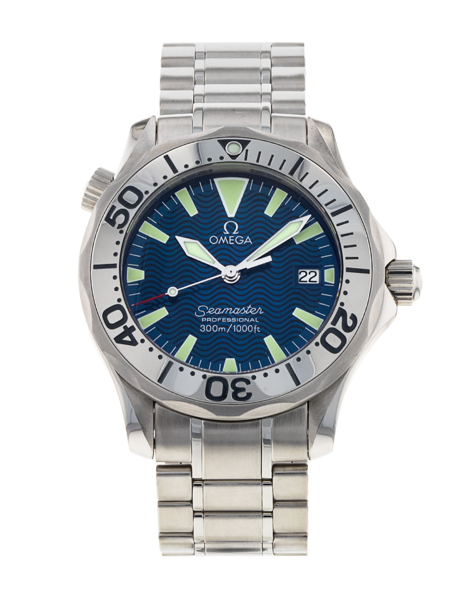 Questo Omega Seamaster 300m Mid-Size 2263.80.00 ha un quadrante blu baton e un cinturino in bracciale. Questo Omega è stato sottoposto a un'accurata ispezione di accuratezza, funzionalità e condizioni presso il nostro centro di assistenza certificato Omega per determinare il livello di ricondizionamento richiesto per soddisfare i nostri rigorosi standard. È stato inoltre verificato nei nostri registri per garantirne l'autenticità. Tutti i nostri orologi hanno una garanzia di 24 mesi per la tua tranquillità.