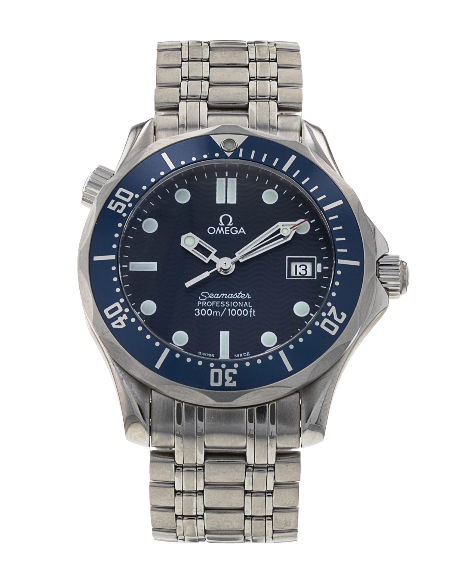 Questo Omega Seamaster 300m Mid-Size 2561.80.00 ha un quadrante blu e un cinturino in bracciale. Questo Omega è stato sottoposto a un'accurata ispezione di accuratezza, funzionalità e condizioni presso il nostro centro di assistenza certificato Omega per determinare il livello di ricondizionamento richiesto per soddisfare i nostri rigorosi standard. È stato inoltre verificato nei nostri registri per garantirne l'autenticità. Tutti i nostri orologi hanno una garanzia di 24 mesi per la tua tranquillità.