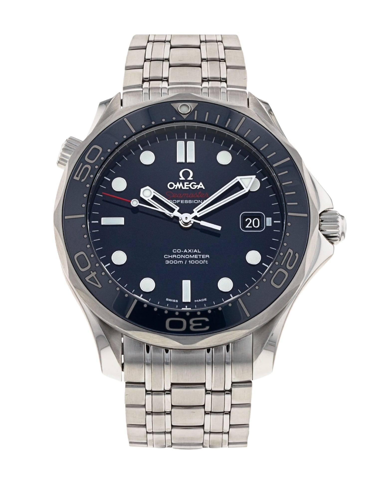 Questo Omega Seamaster 300m 212.30.41.20.03.001 ha un quadrante blu e un cinturino in bracciale. Questo Omega è stato sottoposto a un'accurata ispezione di accuratezza, funzionalità e condizioni presso il nostro centro di assistenza certificato Omega per determinare il livello di ricondizionamento richiesto per soddisfare i nostri rigorosi standard. È stato inoltre verificato nei nostri registri per garantirne l'autenticità. Tutti i nostri orologi hanno una garanzia di 24 mesi per la tua tranquillità.