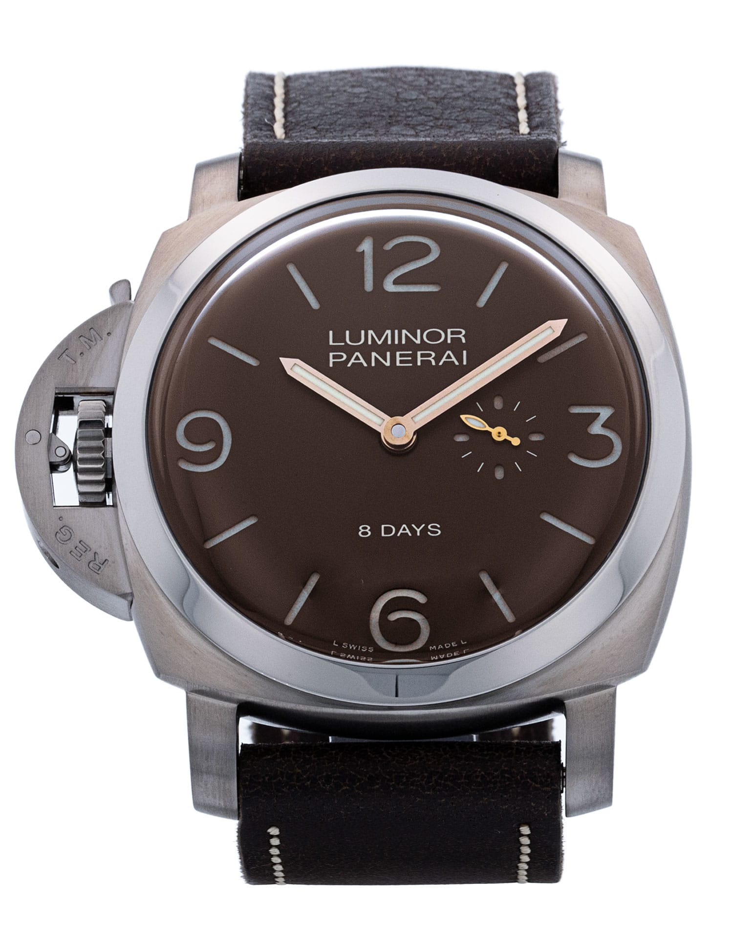 Questo Panerai Luminor 1950 PAM00368 ha un quadrante marrone quadrante numeri arabi e un cinturino in pelle. Questo Panerai è stato sottoposto a un'accurata ispezione di accuratezza, funzionalità e condizioni presso il nostro centro di assistenza certificato Panerai per determinare il livello di ricondizionamento richiesto per soddisfare i nostri rigorosi standard. È stato inoltre verificato nei nostri registri per garantirne l'autenticità. Tutti i nostri orologi hanno una garanzia di 24 mesi per la tua tranquillità.