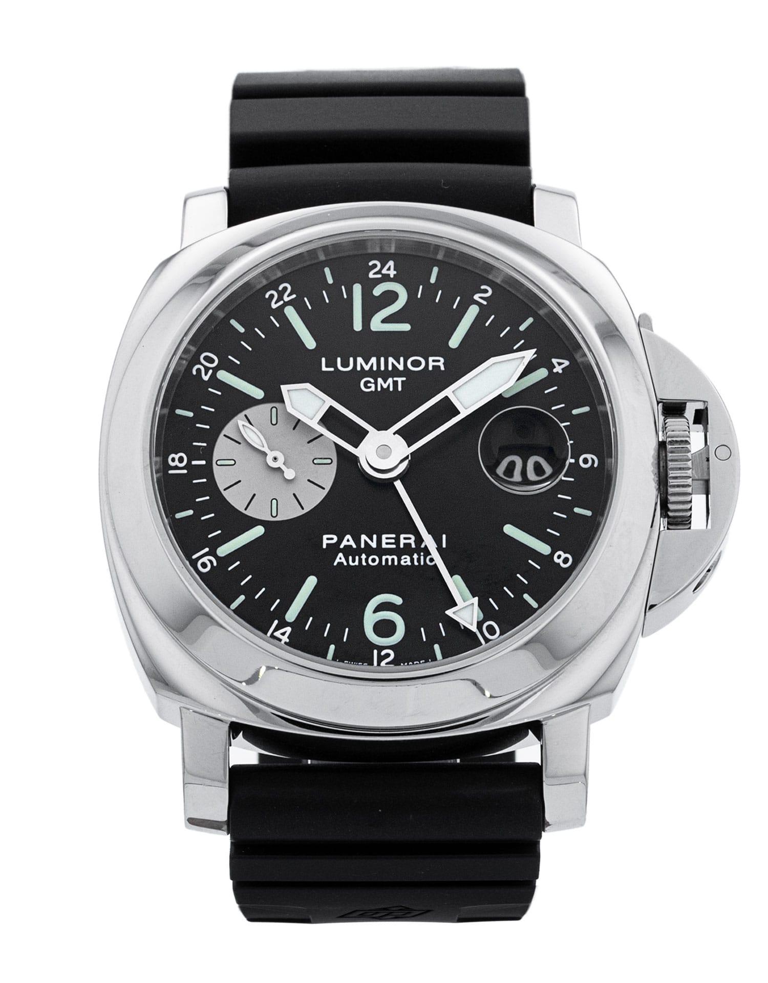 Questo Panerai Luminor GMT PAM00088 ha un quadrante nero baton e un cinturino in gomma. Questo Panerai è stato sottoposto a un'accurata ispezione di accuratezza, funzionalità e condizioni presso il nostro centro di assistenza certificato Panerai per determinare il livello di ricondizionamento richiesto per soddisfare i nostri rigorosi standard. È stato inoltre verificato nei nostri registri per garantirne l'autenticità. Tutti i nostri orologi hanno una garanzia di 24 mesi per la tua tranquillità.