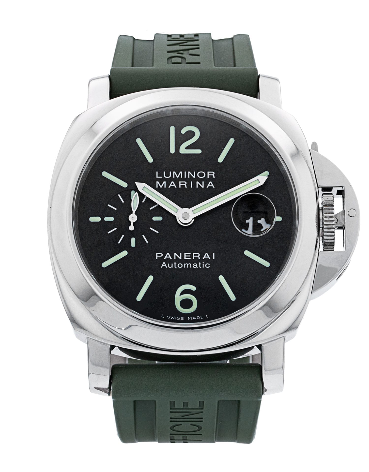 Questo Panerai Luminor Marina PAM00104 ha un quadrante nero baton e un cinturino in gomma. Questo Panerai è stato sottoposto a un'accurata ispezione di accuratezza, funzionalità e condizioni presso il nostro centro di assistenza certificato Panerai per determinare il livello di ricondizionamento richiesto per soddisfare i nostri rigorosi standard. È stato inoltre verificato nei nostri registri per garantirne l'autenticità. Tutti i nostri orologi hanno una garanzia di 24 mesi per la tua tranquillità.
