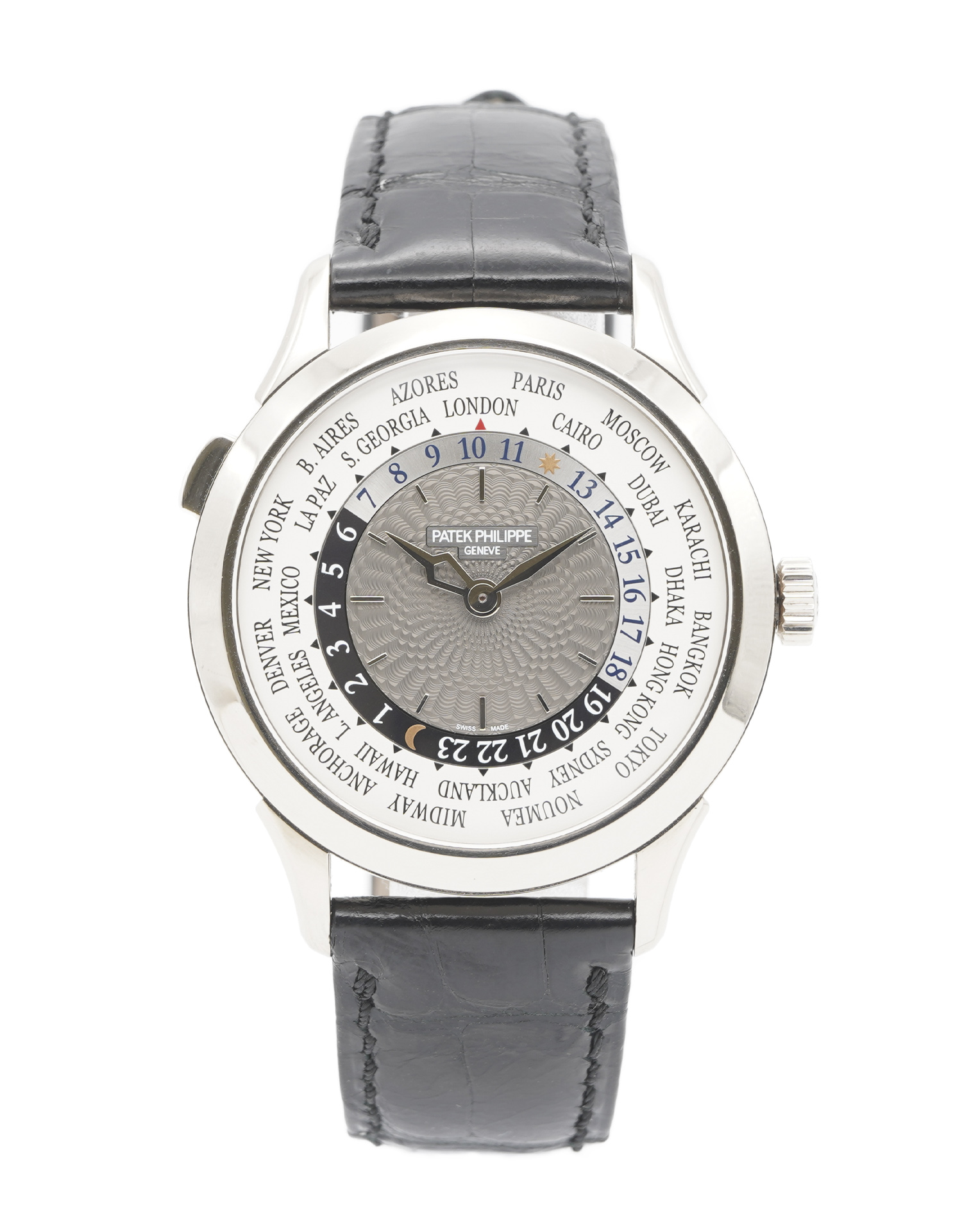 Questo Patek Philippe World Time 5230G-001 ha un quadrante argento e un cinturino in pelle. Questo Patek Philippe è stato sottoposto a un'accurata ispezione di resistenza all'acqua, precisione, funzionalità e condizioni per determinare il livello di ricondizionamento richiesto per soddisfare i nostri rigorosi standard. È stato anche referenziato rispetto a documenti tecnici e registri del produttore, ove disponibili, per garantire l'autenticità e una cronologia pulita. Tutti i nostri orologi hanno una garanzia di 24 mesi per la tua tranquillità.