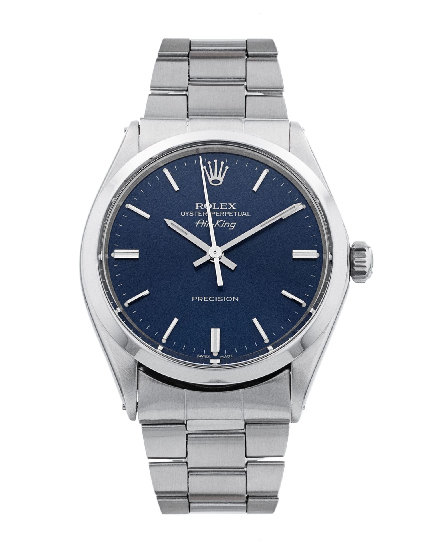 Questo Rolex Air-King 5500 ha un quadrante blu baton e un cinturino in bracciale. Questo Rolex è stato sottoposto a un'accurata ispezione di resistenza all'acqua, precisione, funzionalità e condizioni per determinare il livello di ricondizionamento richiesto per soddisfare i nostri rigorosi standard. È stato anche referenziato rispetto a documenti tecnici e registri del produttore, ove disponibili, per garantire l'autenticità e una cronologia pulita. Tutti i nostri orologi hanno una garanzia di 24 mesi per la tua tranquillità. Uno dei nostri tecnici specializzati nella lucidatura ha rimosso i segni sulla cassa e sul bracciale di questo orologio, causati dall’usura quotidiana, motivo per cui questo orologio non viene fornito con la garanzia residua del produttore.