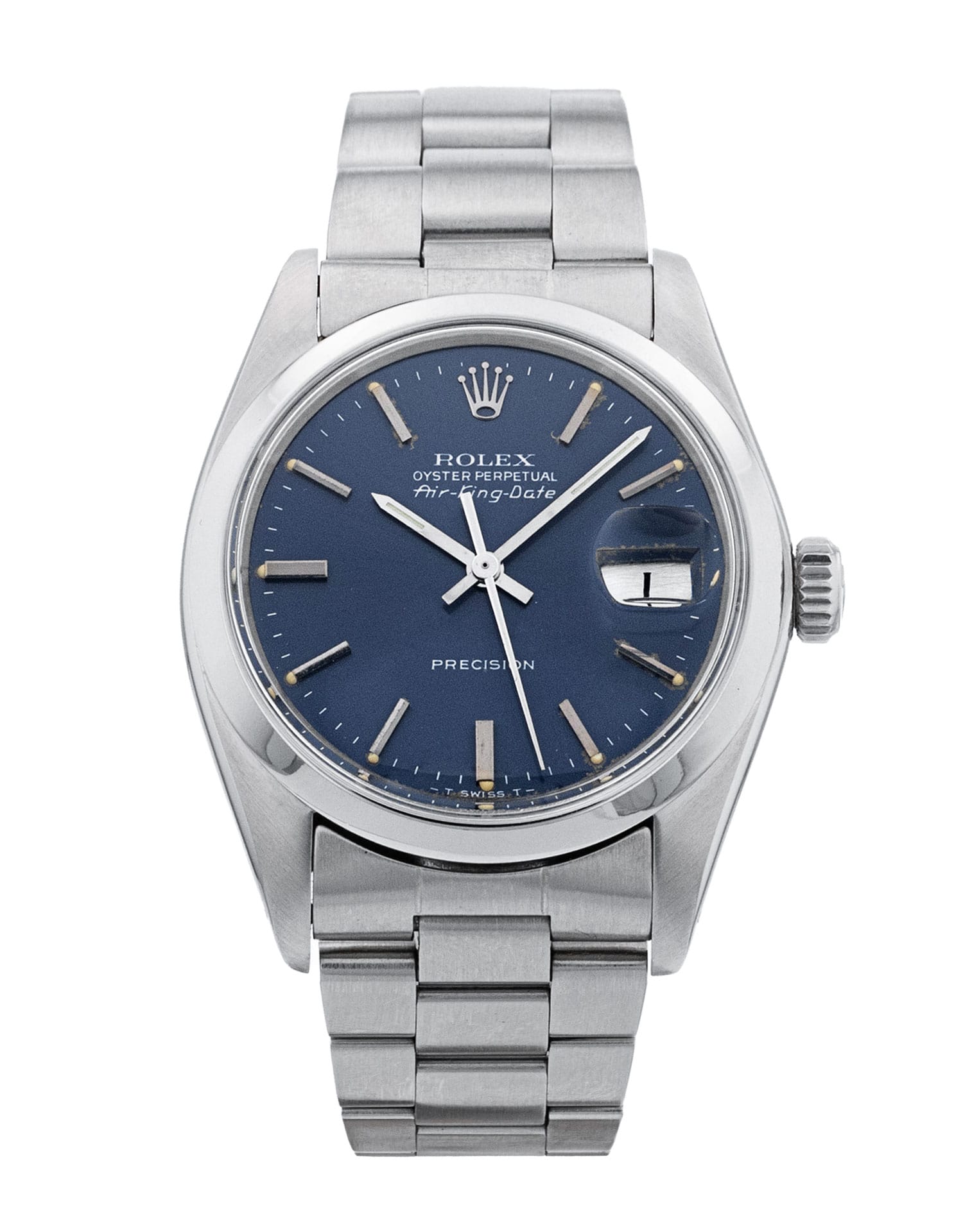 Questo Rolex Air-King 5700 ha un quadrante blu baton e un cinturino in bracciale. A causa dell'età, questo Rolex non rientra nelle nostre tolleranze tipiche previste per il cronometraggio e non è più adatto per l'uso in ambienti umidi o per immersione in acqua. Nell'interesse di preservare le caratteristiche originali, è stata prestata la massima cura per restaurare con attenzione questo orologio. È stato anche referenziato rispetto a documenti tecnici e registri del produttore, ove disponibili, per garantire l'autenticità e una cronologia pulita. Uno dei nostri tecnici specializzati nella lucidatura ha rimosso i segni sulla cassa e sul bracciale di questo orologio, causati dall’usura quotidiana, motivo per cui questo orologio non viene fornito con la garanzia residua del produttore.
