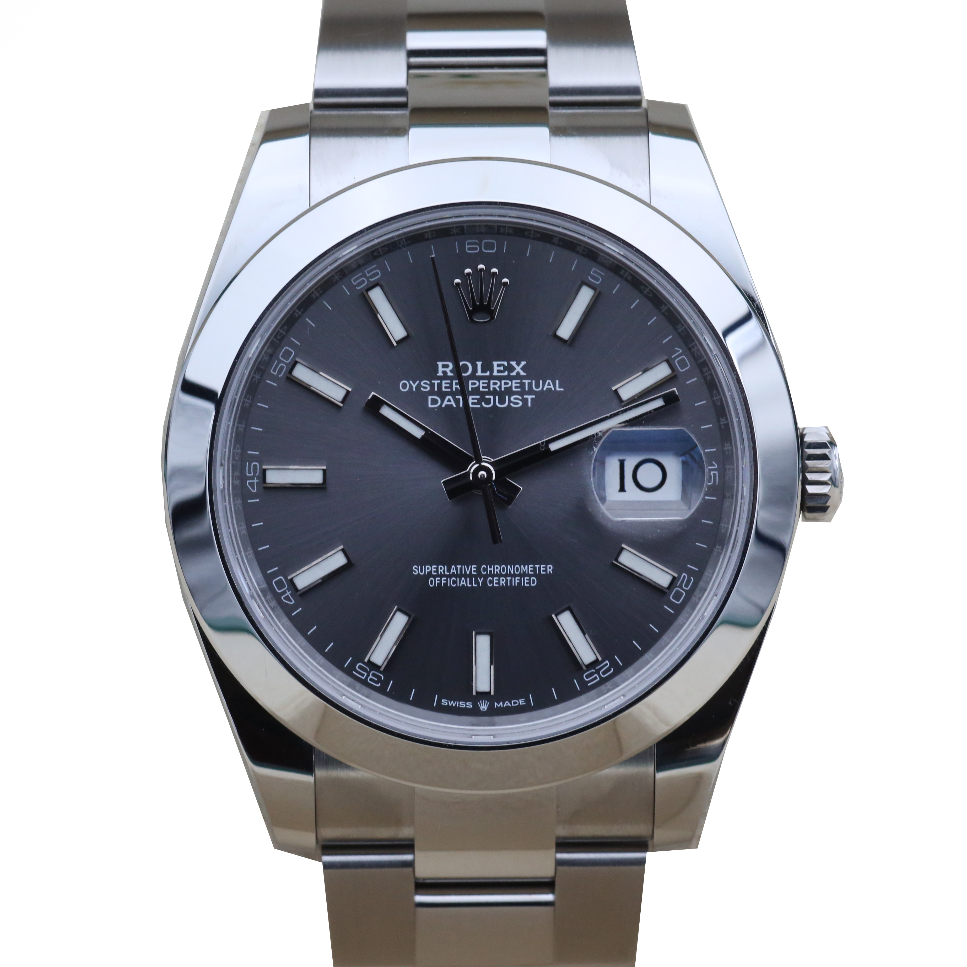 Questo Rolex Datejust 41 126300 ha un quadrante ardesia baton e un cinturino in bracciale. Questo Rolex è stato sottoposto a un'accurata ispezione di resistenza all'acqua, precisione, funzionalità e condizioni per determinare il livello di ricondizionamento richiesto per soddisfare i nostri rigorosi standard. È stato anche referenziato rispetto a documenti tecnici e registri del produttore, ove disponibili, per garantire l'autenticità e una cronologia pulita. I nostri orologi hanno una garanzia di 24 mesi per vostra maggior tranquillità contestualmente a eventuali garanzie residue del produttore derivate dal nuovo o dalla manutenzione. Per mantenere la garanzia del produttore su questo prodotto, l’orologio non è stato lucidato nel nostro centro di assistenza.