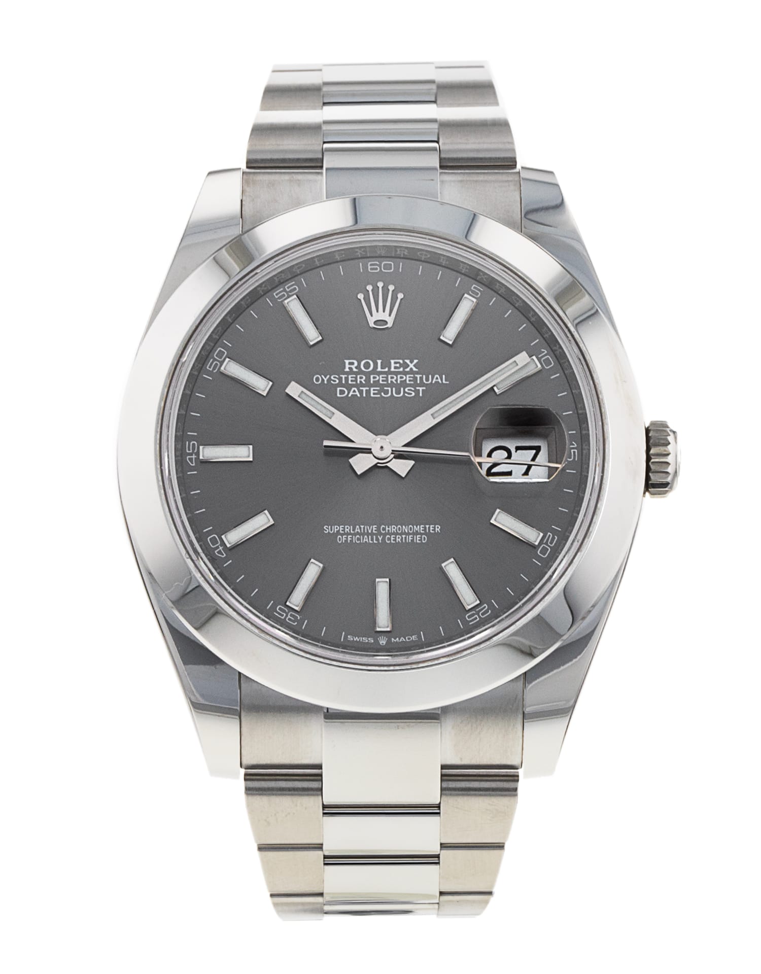 Questo Rolex Datejust 41 126300 ha un quadrante ardesia baton e un cinturino in bracciale. Questo Rolex è stato sottoposto a un'accurata ispezione di resistenza all'acqua, precisione, funzionalità e condizioni per determinare il livello di ricondizionamento richiesto per soddisfare i nostri rigorosi standard. È stato anche referenziato rispetto a documenti tecnici e registri del produttore, ove disponibili, per garantire l'autenticità e una cronologia pulita. I nostri orologi hanno una garanzia di 24 mesi per vostra maggior tranquillità contestualmente a eventuali garanzie residue del produttore derivate dal nuovo o dalla manutenzione. Per mantenere la garanzia del produttore su questo prodotto, l’orologio non è stato lucidato nel nostro centro di assistenza.