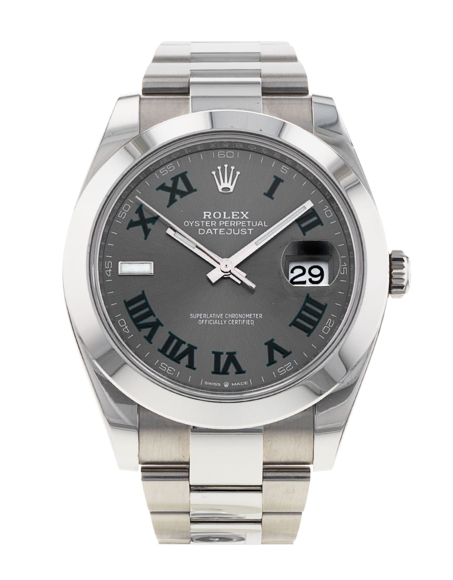 Questo Rolex Datejust 41 126300 ha un quadrante slate roman numeral e un cinturino in bracciale. Questo Rolex è stato sottoposto a un'accurata ispezione di resistenza all'acqua, precisione, funzionalità e condizioni per determinare il livello di ricondizionamento richiesto per soddisfare i nostri rigorosi standard. È stato anche referenziato rispetto a documenti tecnici e registri del produttore, ove disponibili, per garantire l'autenticità e una cronologia pulita. I nostri orologi hanno una garanzia di 24 mesi per vostra maggior tranquillità contestualmente a eventuali garanzie residue del produttore derivate dal nuovo o dalla manutenzione. Per mantenere la garanzia del produttore su questo prodotto, l’orologio non è stato lucidato nel nostro centro di assistenza.