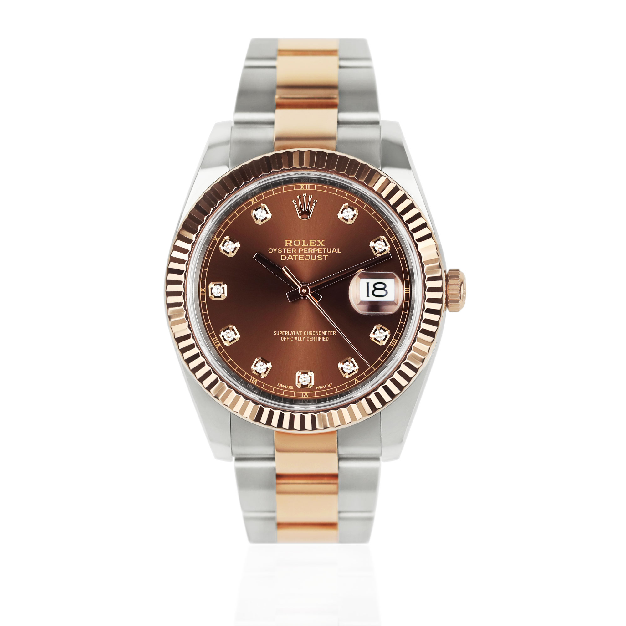 Questo Rolex Datejust 41 126331 ha un quadrante cioccolato diamante e un cinturino in bracciale. Questo Rolex è stato sottoposto a un'accurata ispezione di resistenza all'acqua, precisione, funzionalità e condizioni per determinare il livello di ricondizionamento richiesto per soddisfare i nostri rigorosi standard. È stato anche referenziato rispetto a documenti tecnici e registri del produttore, ove disponibili, per garantire l'autenticità e una cronologia pulita. Tutti i nostri orologi hanno una garanzia di 24 mesi per la tua tranquillità. Uno dei nostri tecnici specializzati nella lucidatura ha rimosso i segni sulla cassa e sul bracciale di questo orologio, causati dall’usura quotidiana, motivo per cui questo orologio non viene fornito con la garanzia residua del produttore.