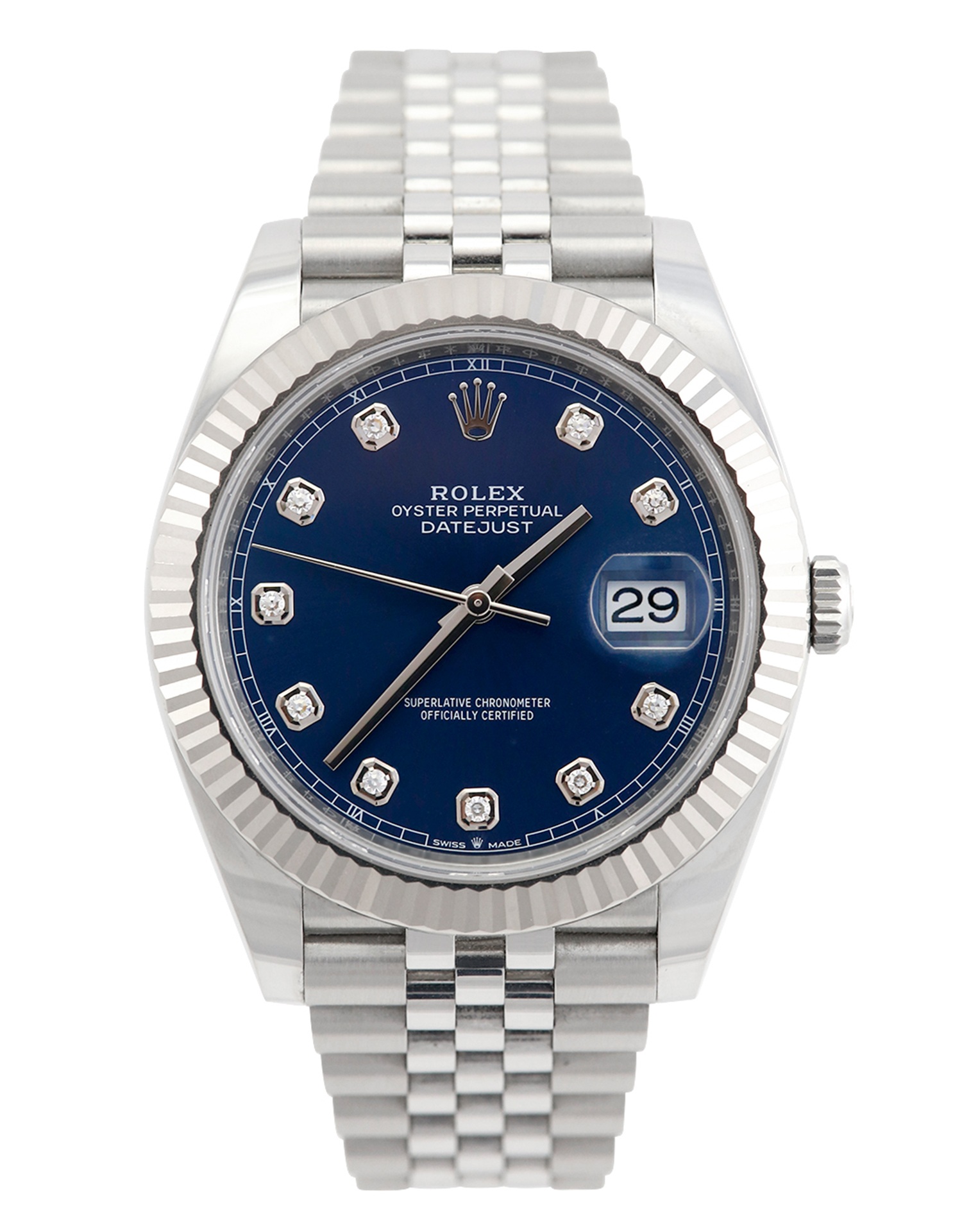Questo Rolex Datejust 41 126334 ha un quadrante blu diamante e un cinturino in bracciale. Questo Rolex è stato sottoposto a un'accurata ispezione di resistenza all'acqua, precisione, funzionalità e condizioni per determinare il livello di ricondizionamento richiesto per soddisfare i nostri rigorosi standard. È stato anche referenziato rispetto a documenti tecnici e registri del produttore, ove disponibili, per garantire l'autenticità e una cronologia pulita. I nostri orologi hanno una garanzia di 24 mesi per vostra maggior tranquillità contestualmente a eventuali garanzie residue del produttore derivate dal nuovo o dalla manutenzione. Per mantenere la garanzia del produttore su questo prodotto, l’orologio non è stato lucidato nel nostro centro di assistenza.