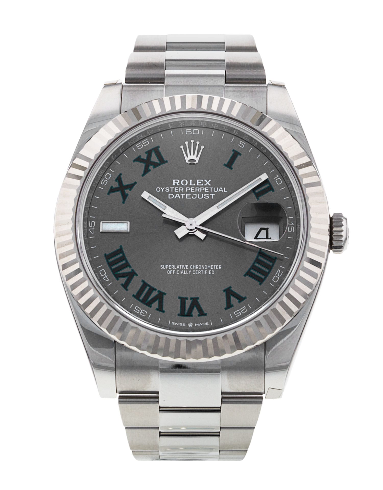 Questo Rolex Datejust 41 126334 ha un quadrante slate roman numeral e un cinturino in bracciale. Questo Rolex è stato sottoposto a un'accurata ispezione di resistenza all'acqua, precisione, funzionalità e condizioni per determinare il livello di ricondizionamento richiesto per soddisfare i nostri rigorosi standard. È stato anche referenziato rispetto a documenti tecnici e registri del produttore, ove disponibili, per garantire l'autenticità e una cronologia pulita. I nostri orologi hanno una garanzia di 24 mesi per vostra maggior tranquillità contestualmente a eventuali garanzie residue del produttore derivate dal nuovo o dalla manutenzione. Per mantenere la garanzia del produttore su questo prodotto, l’orologio non è stato lucidato nel nostro centro di assistenza.