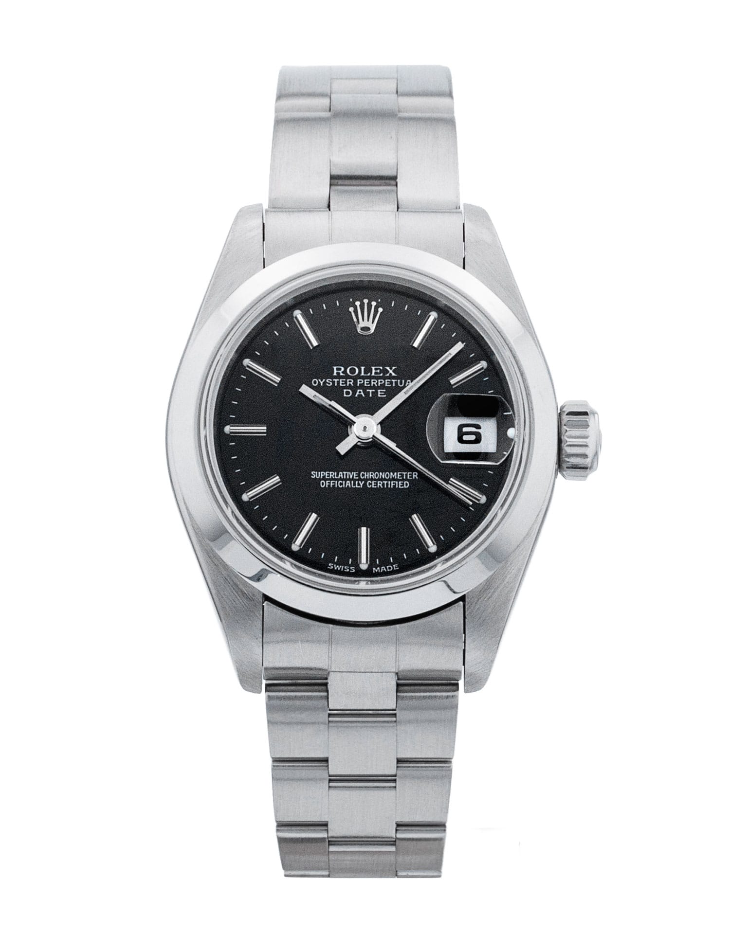 Questo Rolex Datejust Lady 69160 ha un quadrante nero baton e un cinturino in bracciale. Questo Rolex è stato sottoposto a un'accurata ispezione di resistenza all'acqua, precisione, funzionalità e condizioni per determinare il livello di ricondizionamento richiesto per soddisfare i nostri rigorosi standard. È stato anche referenziato rispetto a documenti tecnici e registri del produttore, ove disponibili, per garantire l'autenticità e una cronologia pulita. Tutti i nostri orologi hanno una garanzia di 24 mesi per la tua tranquillità. Uno dei nostri tecnici specializzati nella lucidatura ha rimosso i segni sulla cassa e sul bracciale di questo orologio, causati dall’usura quotidiana, motivo per cui questo orologio non viene fornito con la garanzia residua del produttore.