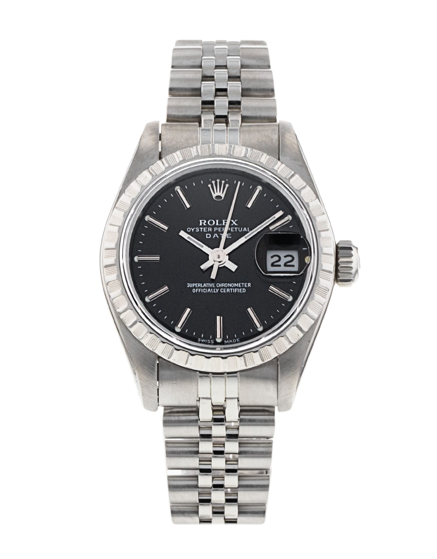 Questo Rolex Datejust Lady 69240 ha un quadrante nero baton e un cinturino in bracciale. Questo Rolex è stato sottoposto a un'accurata ispezione di resistenza all'acqua, precisione, funzionalità e condizioni per determinare il livello di ricondizionamento richiesto per soddisfare i nostri rigorosi standard. È stato anche referenziato rispetto a documenti tecnici e registri del produttore, ove disponibili, per garantire l'autenticità e una cronologia pulita. Tutti i nostri orologi hanno una garanzia di 24 mesi per la tua tranquillità. Uno dei nostri tecnici specializzati nella lucidatura ha rimosso i segni sulla cassa e sul bracciale di questo orologio, causati dall’usura quotidiana, motivo per cui questo orologio non viene fornito con la garanzia residua del produttore.