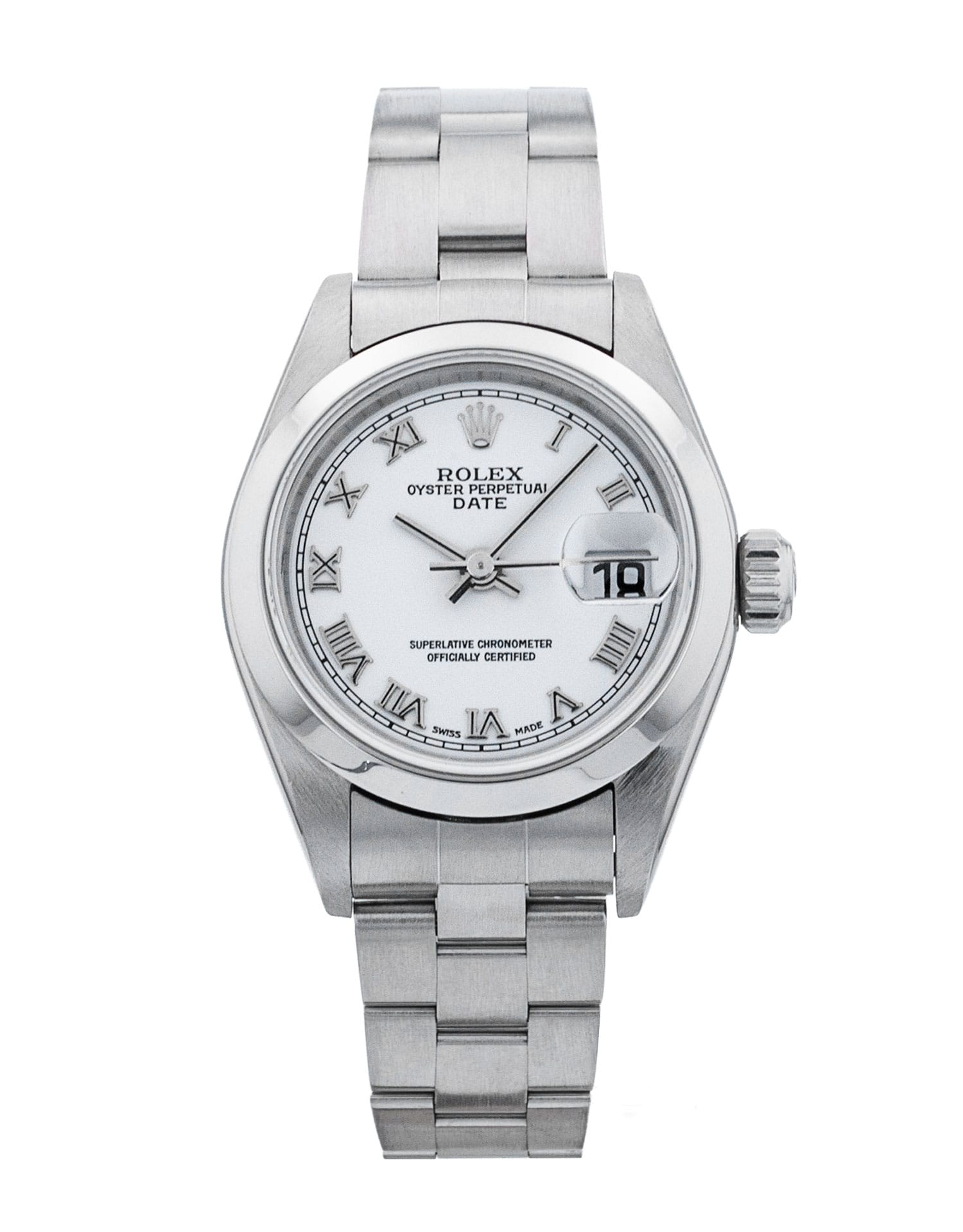 Questo Rolex Datejust Lady 79160 ha un quadrante bianco numeri romani e un cinturino in bracciale. Questo Rolex è stato sottoposto a un'accurata ispezione di resistenza all'acqua, precisione, funzionalità e condizioni per determinare il livello di ricondizionamento richiesto per soddisfare i nostri rigorosi standard. È stato anche referenziato rispetto a documenti tecnici e registri del produttore, ove disponibili, per garantire l'autenticità e una cronologia pulita. Tutti i nostri orologi hanno una garanzia di 24 mesi per la tua tranquillità. Uno dei nostri tecnici specializzati nella lucidatura ha rimosso i segni sulla cassa e sul bracciale di questo orologio, causati dall’usura quotidiana, motivo per cui questo orologio non viene fornito con la garanzia residua del produttore.