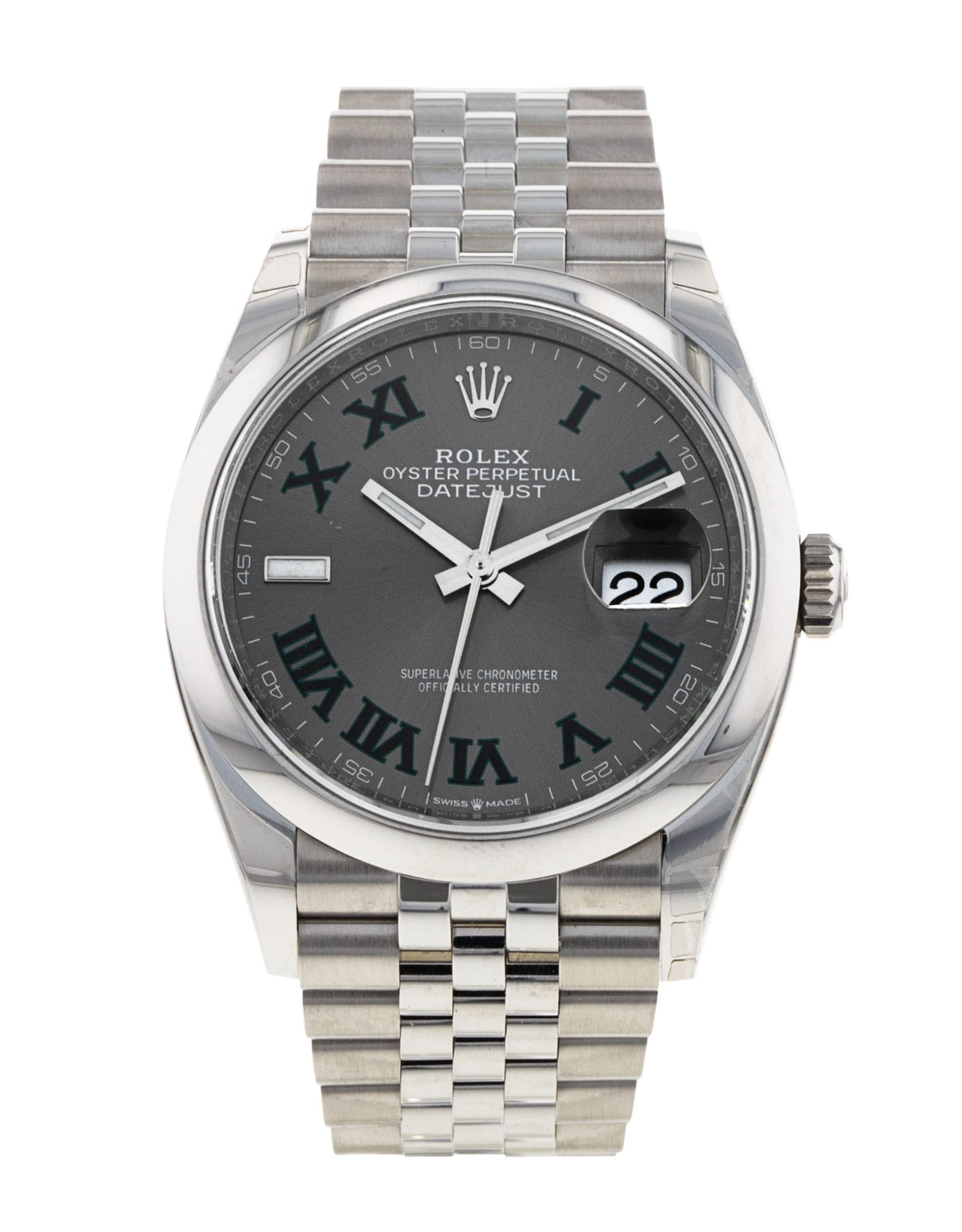 Questo Rolex Datejust 126200 ha un quadrante slate roman numeral e un cinturino in bracciale. Questo Rolex è stato sottoposto a un'accurata ispezione di resistenza all'acqua, precisione, funzionalità e condizioni per determinare il livello di ricondizionamento richiesto per soddisfare i nostri rigorosi standard. È stato anche referenziato rispetto a documenti tecnici e registri del produttore, ove disponibili, per garantire l'autenticità e una cronologia pulita. I nostri orologi hanno una garanzia di 24 mesi per vostra maggior tranquillità contestualmente a eventuali garanzie residue del produttore derivate dal nuovo o dalla manutenzione. Per mantenere la garanzia del produttore su questo prodotto, l’orologio non è stato lucidato nel nostro centro di assistenza.