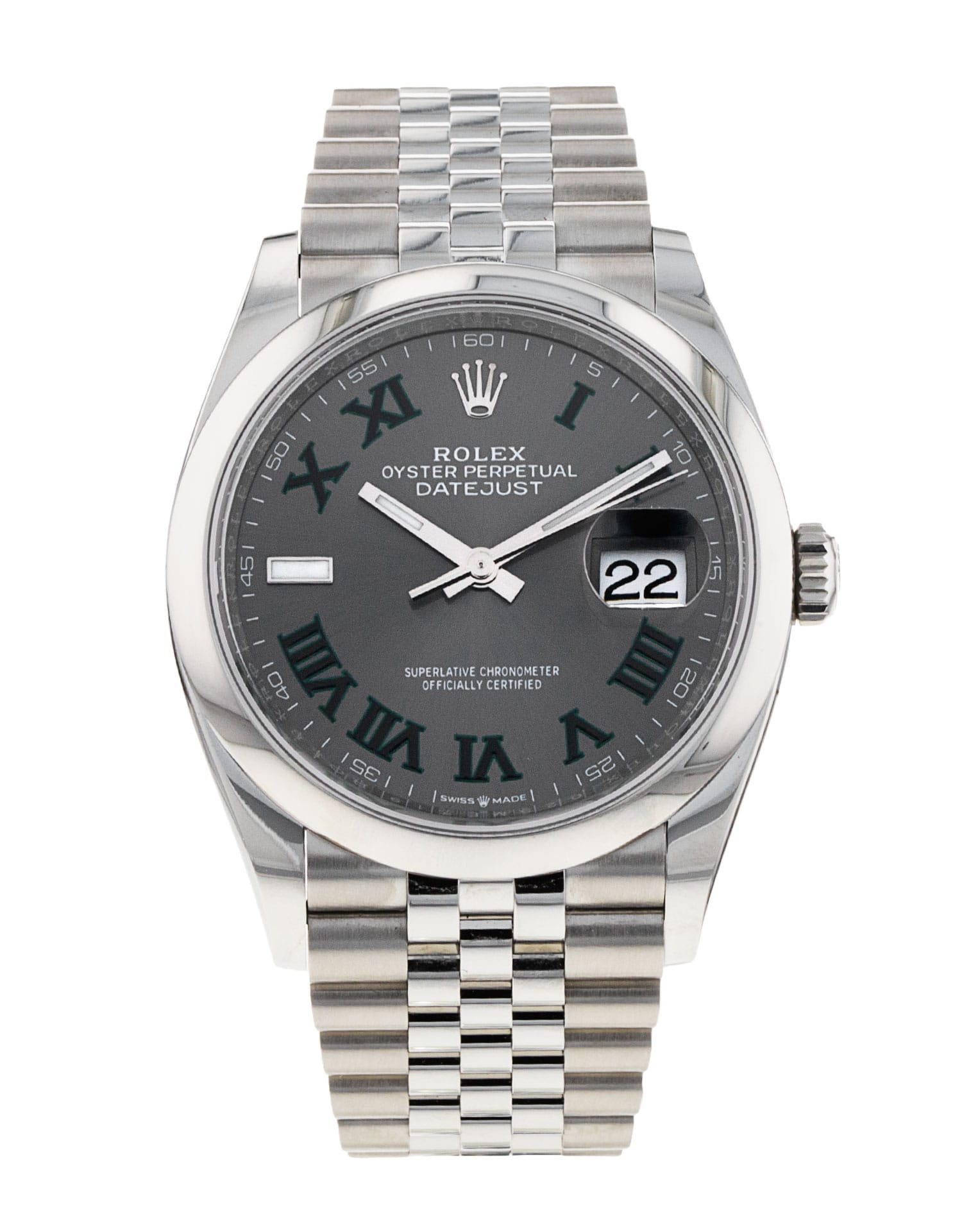 Questo Rolex Datejust 126200 ha un quadrante slate roman numeral e un cinturino in bracciale. Questo Rolex è stato sottoposto a un'accurata ispezione di resistenza all'acqua, precisione, funzionalità e condizioni per determinare il livello di ricondizionamento richiesto per soddisfare i nostri rigorosi standard. È stato anche referenziato rispetto a documenti tecnici e registri del produttore, ove disponibili, per garantire l'autenticità e una cronologia pulita. I nostri orologi hanno una garanzia di 24 mesi per vostra maggior tranquillità contestualmente a eventuali garanzie residue del produttore derivate dal nuovo o dalla manutenzione. Per mantenere la garanzia del produttore su questo prodotto, l’orologio non è stato lucidato nel nostro centro di assistenza.