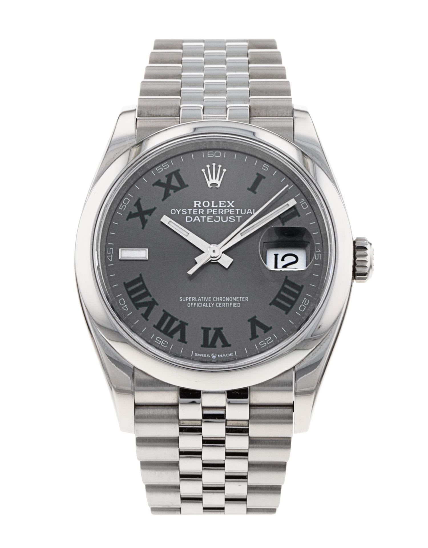 Questo Rolex Datejust 126200 ha un quadrante slate roman numeral e un cinturino in bracciale. Questo Rolex è stato sottoposto a un'accurata ispezione di resistenza all'acqua, precisione, funzionalità e condizioni per determinare il livello di ricondizionamento richiesto per soddisfare i nostri rigorosi standard. È stato anche referenziato rispetto a documenti tecnici e registri del produttore, ove disponibili, per garantire l'autenticità e una cronologia pulita. I nostri orologi hanno una garanzia di 24 mesi per vostra maggior tranquillità contestualmente a eventuali garanzie residue del produttore derivate dal nuovo o dalla manutenzione. Per mantenere la garanzia del produttore su questo prodotto, l’orologio non è stato lucidato nel nostro centro di assistenza.