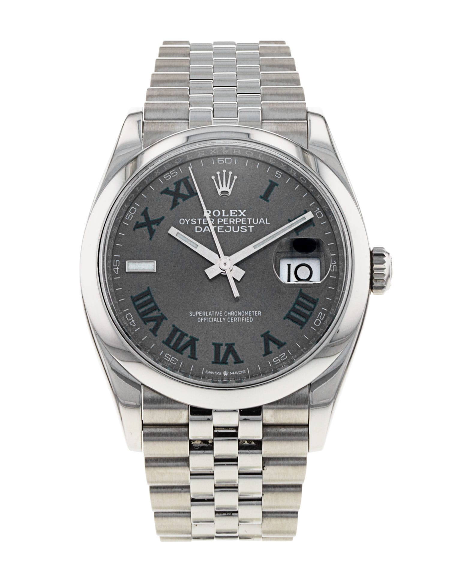 Questo Rolex Datejust 126200 ha un quadrante slate roman numeral e un cinturino in bracciale. Questo Rolex è stato sottoposto a un'accurata ispezione di resistenza all'acqua, precisione, funzionalità e condizioni per determinare il livello di ricondizionamento richiesto per soddisfare i nostri rigorosi standard. È stato anche referenziato rispetto a documenti tecnici e registri del produttore, ove disponibili, per garantire l'autenticità e una cronologia pulita. I nostri orologi hanno una garanzia di 24 mesi per vostra maggior tranquillità contestualmente a eventuali garanzie residue del produttore derivate dal nuovo o dalla manutenzione. Per mantenere la garanzia del produttore su questo prodotto, l’orologio non è stato lucidato nel nostro centro di assistenza.