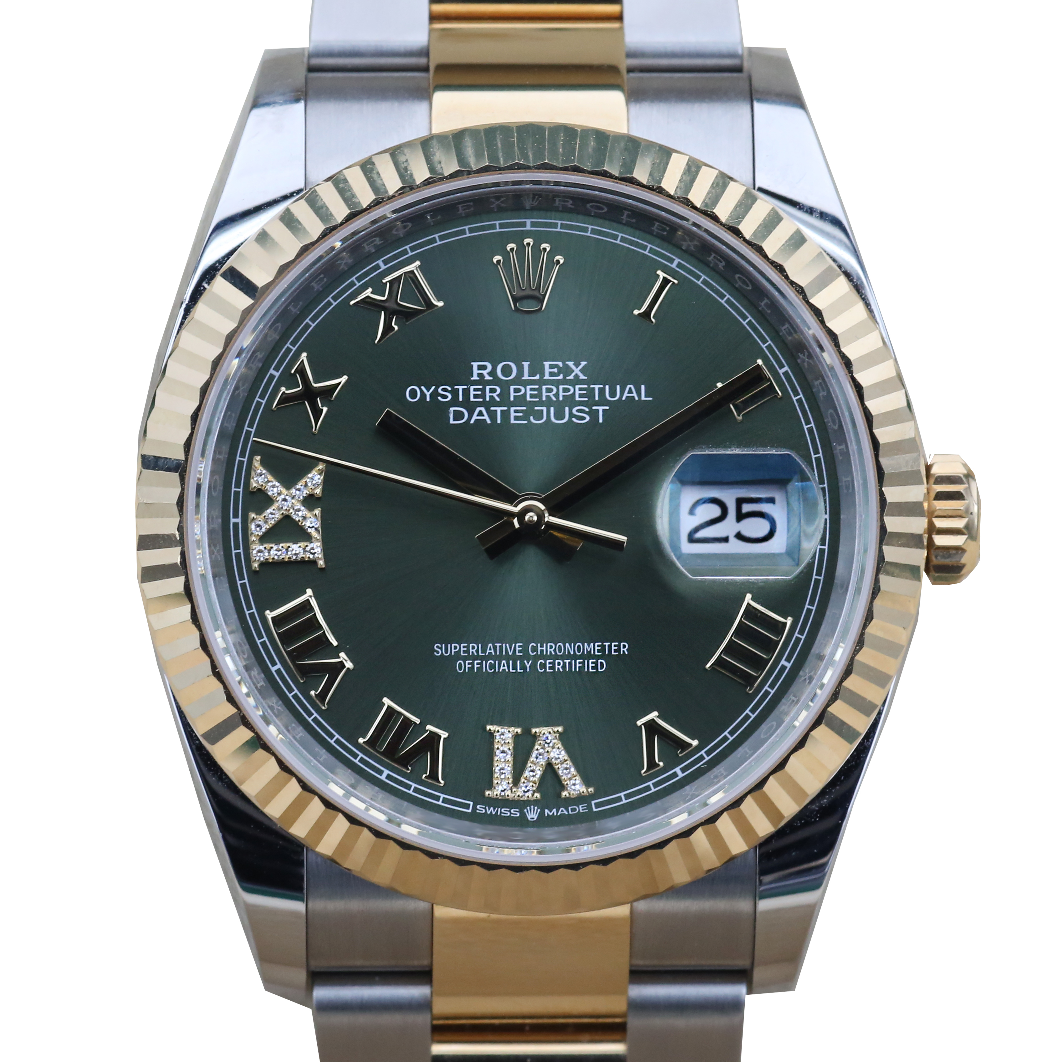 Questo Rolex Datejust 126233 ha un quadrante olive green diamond e un cinturino in bracciale. Questo Rolex è stato sottoposto a un'accurata ispezione di resistenza all'acqua, precisione, funzionalità e condizioni per determinare il livello di ricondizionamento richiesto per soddisfare i nostri rigorosi standard. È stato anche referenziato rispetto a documenti tecnici e registri del produttore, ove disponibili, per garantire l'autenticità e una cronologia pulita. I nostri orologi hanno una garanzia di 24 mesi per vostra maggior tranquillità contestualmente a eventuali garanzie residue del produttore derivate dal nuovo o dalla manutenzione. Per mantenere la garanzia del produttore su questo prodotto, l’orologio non è stato lucidato nel nostro centro di assistenza.