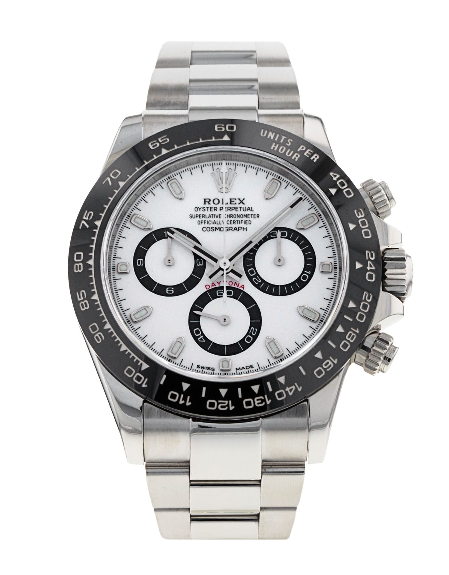 Questo Rolex Daytona 116500 LN ha un quadrante bianco e un cinturino in bracciale. Questo Rolex è stato sottoposto a un'accurata ispezione di resistenza all'acqua, precisione, funzionalità e condizioni per determinare il livello di ricondizionamento richiesto per soddisfare i nostri rigorosi standard. È stato anche referenziato rispetto a documenti tecnici e registri del produttore, ove disponibili, per garantire l'autenticità e una cronologia pulita. Tutti i nostri orologi hanno una garanzia di 24 mesi per la tua tranquillità. Uno dei nostri tecnici specializzati nella lucidatura ha rimosso i segni sulla cassa e sul bracciale di questo orologio, causati dall’usura quotidiana, motivo per cui questo orologio non viene fornito con la garanzia residua del produttore.