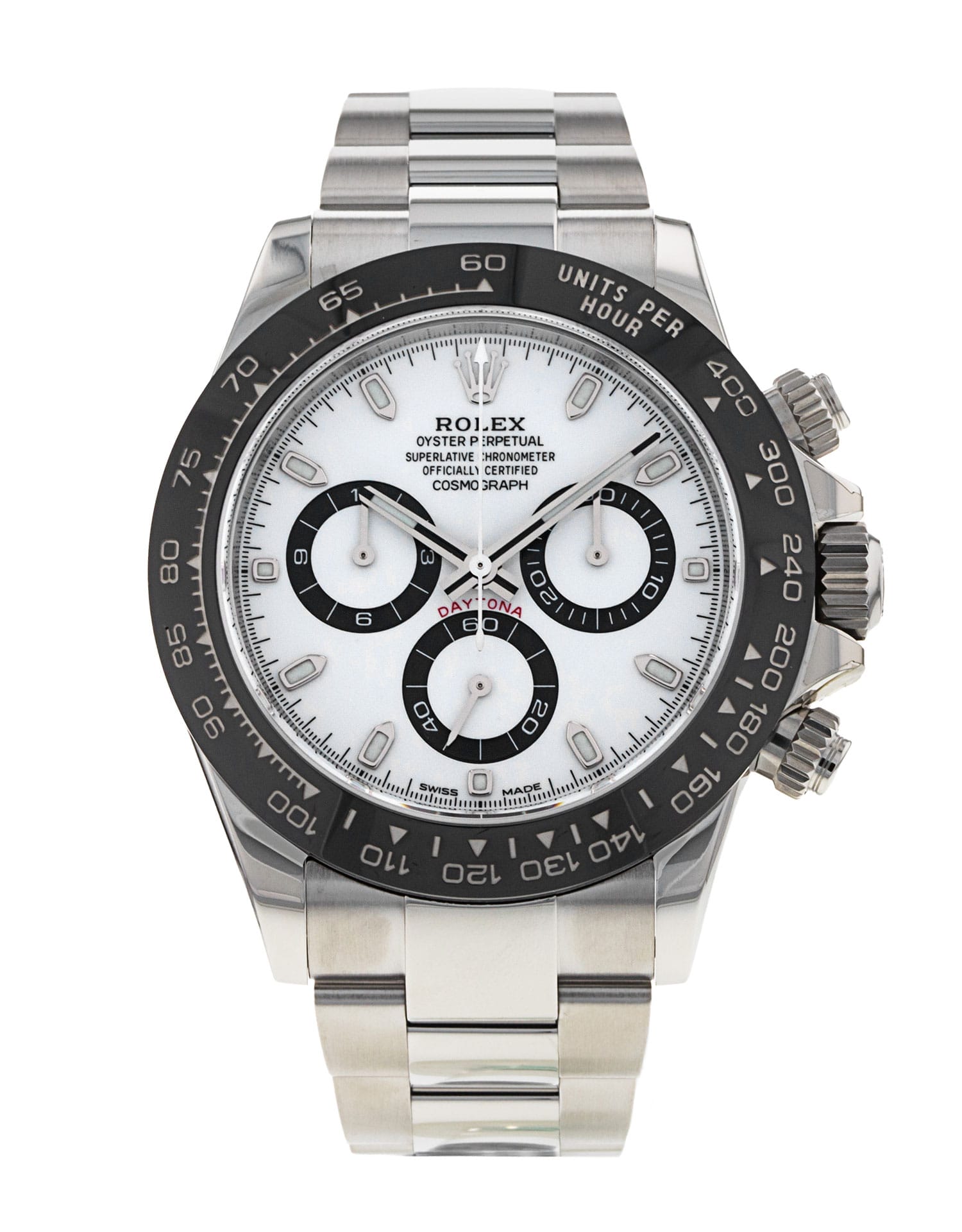 Questo Rolex Daytona 116500 LN ha un quadrante bianco e un cinturino in bracciale. Questo Rolex è stato sottoposto a un'accurata ispezione di resistenza all'acqua, precisione, funzionalità e condizioni per determinare il livello di ricondizionamento richiesto per soddisfare i nostri rigorosi standard. È stato anche referenziato rispetto a documenti tecnici e registri del produttore, ove disponibili, per garantire l'autenticità e una cronologia pulita. Tutti i nostri orologi hanno una garanzia di 24 mesi per la tua tranquillità. Uno dei nostri tecnici specializzati nella lucidatura ha rimosso i segni sulla cassa e sul bracciale di questo orologio, causati dall’usura quotidiana, motivo per cui questo orologio non viene fornito con la garanzia residua del produttore.