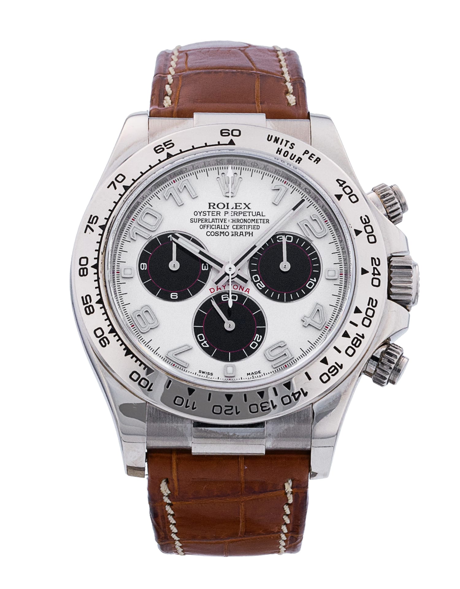 Questo Rolex Daytona 116519 ha un quadrante bianco numeri arabi e un cinturino in pelle. Questo Rolex è stato sottoposto a un'accurata ispezione di resistenza all'acqua, precisione, funzionalità e condizioni per determinare il livello di ricondizionamento richiesto per soddisfare i nostri rigorosi standard. È stato anche referenziato rispetto a documenti tecnici e registri del produttore, ove disponibili, per garantire l'autenticità e una cronologia pulita. Tutti i nostri orologi hanno una garanzia di 24 mesi per la tua tranquillità. Uno dei nostri tecnici specializzati nella lucidatura ha rimosso i segni sulla cassa e sul bracciale di questo orologio, causati dall’usura quotidiana, motivo per cui questo orologio non viene fornito con la garanzia residua del produttore.