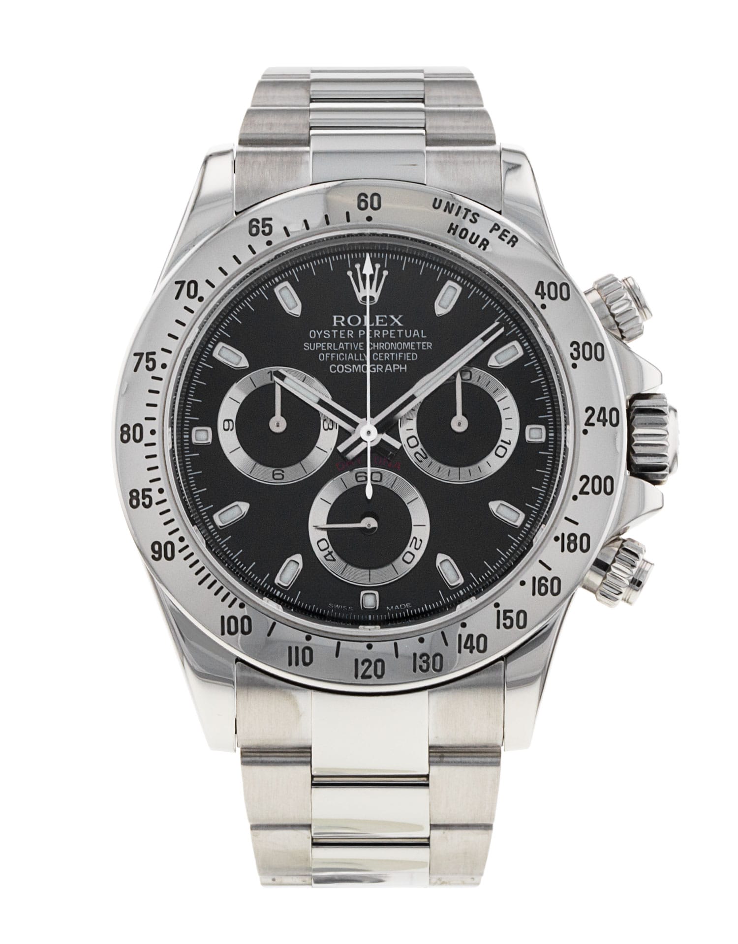Questo Rolex Daytona 116520 ha un quadrante nero e un cinturino in bracciale. Questo Rolex è stato sottoposto a un'accurata ispezione di resistenza all'acqua, precisione, funzionalità e condizioni per determinare il livello di ricondizionamento richiesto per soddisfare i nostri rigorosi standard. È stato anche referenziato rispetto a documenti tecnici e registri del produttore, ove disponibili, per garantire l'autenticità e una cronologia pulita. Tutti i nostri orologi hanno una garanzia di 24 mesi per la tua tranquillità. Uno dei nostri tecnici specializzati nella lucidatura ha rimosso i segni sulla cassa e sul bracciale di questo orologio, causati dall’usura quotidiana, motivo per cui questo orologio non viene fornito con la garanzia residua del produttore.