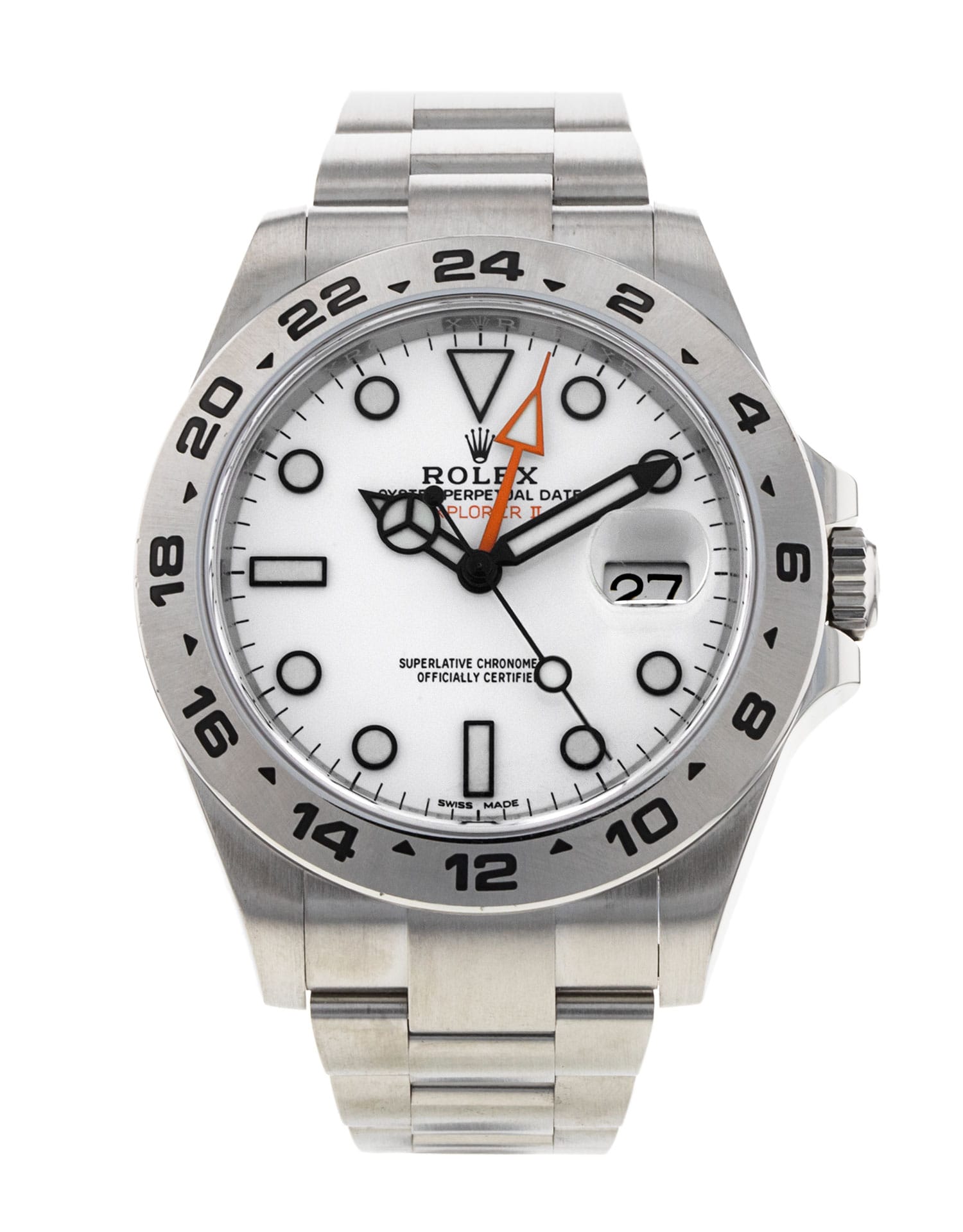 Questo Rolex Explorer II 216570 ha un quadrante bianco e un cinturino in bracciale. Questo Rolex è stato sottoposto a un'accurata ispezione di resistenza all'acqua, precisione, funzionalità e condizioni per determinare il livello di ricondizionamento richiesto per soddisfare i nostri rigorosi standard. È stato anche referenziato rispetto a documenti tecnici e registri del produttore, ove disponibili, per garantire l'autenticità e una cronologia pulita. Tutti i nostri orologi hanno una garanzia di 24 mesi per la tua tranquillità. Uno dei nostri tecnici specializzati nella lucidatura ha rimosso i segni sulla cassa e sul bracciale di questo orologio, causati dall’usura quotidiana, motivo per cui questo orologio non viene fornito con la garanzia residua del produttore.