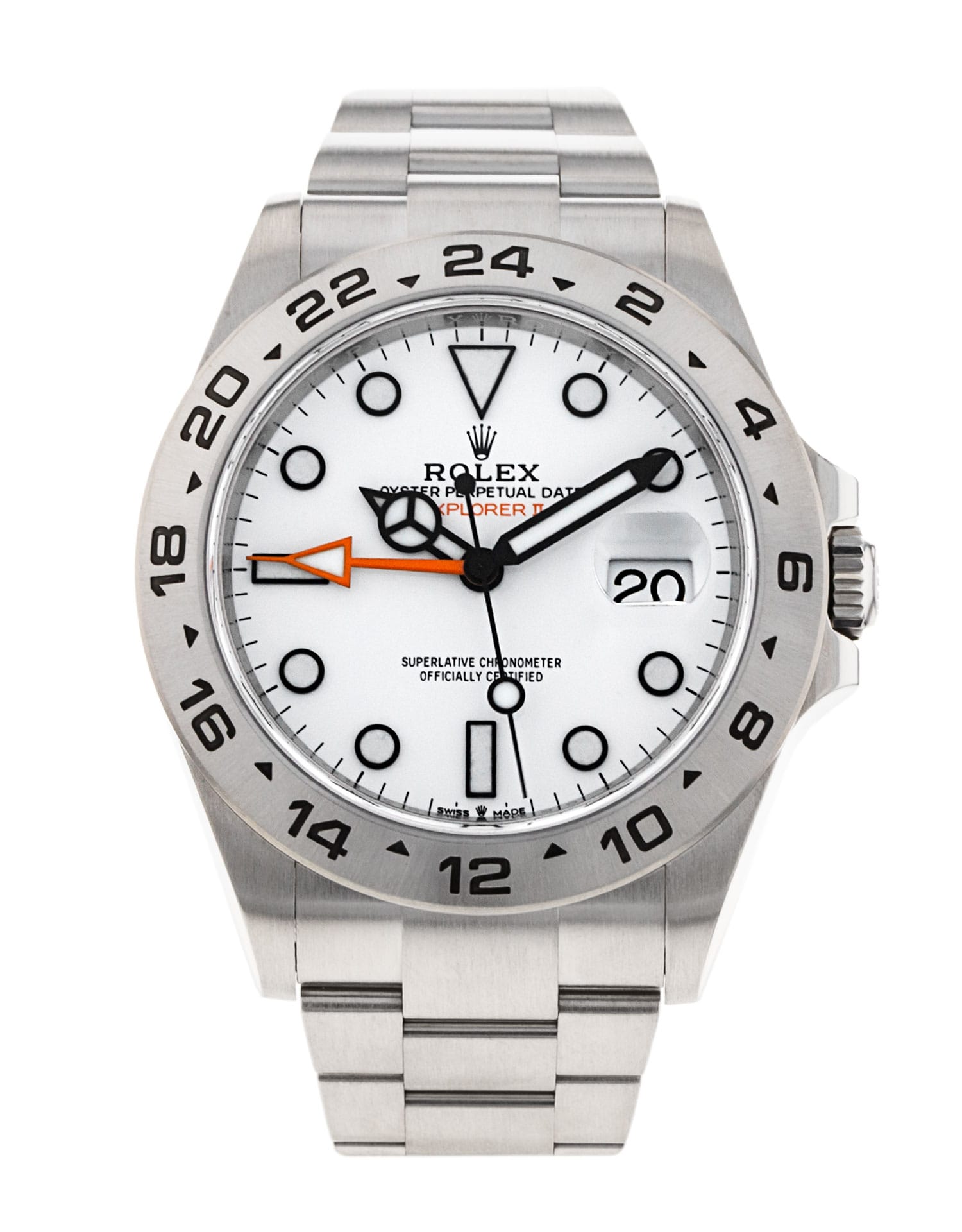 Questo Rolex Explorer II 226570 ha un quadrante bianco e un cinturino in bracciale. Questo Rolex è stato sottoposto a un'accurata ispezione di resistenza all'acqua, precisione, funzionalità e condizioni per determinare il livello di ricondizionamento richiesto per soddisfare i nostri rigorosi standard. È stato anche referenziato rispetto a documenti tecnici e registri del produttore, ove disponibili, per garantire l'autenticità e una cronologia pulita. Tutti i nostri orologi hanno una garanzia di 24 mesi per la tua tranquillità. Uno dei nostri tecnici specializzati nella lucidatura ha rimosso i segni sulla cassa e sul bracciale di questo orologio, causati dall’usura quotidiana, motivo per cui questo orologio non viene fornito con la garanzia residua del produttore.