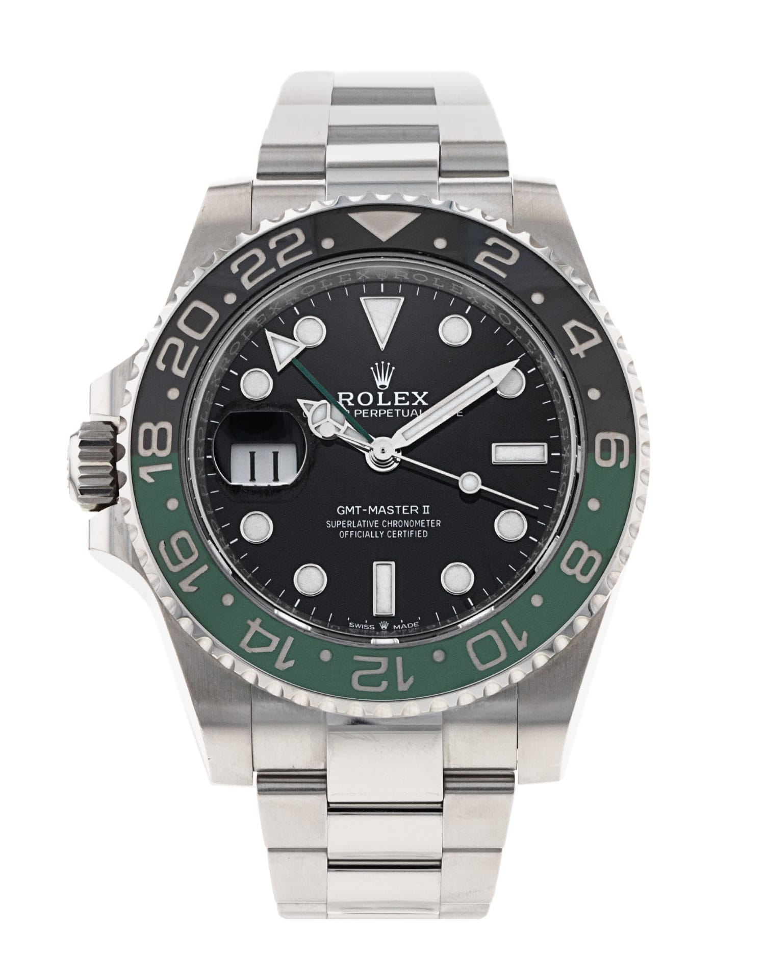 Questo Rolex GMT Master II 126720 VTNR ha un quadrante nero e un cinturino in bracciale. Questo Rolex è stato sottoposto a un'accurata ispezione di resistenza all'acqua, precisione, funzionalità e condizioni per determinare il livello di ricondizionamento richiesto per soddisfare i nostri rigorosi standard. È stato anche referenziato rispetto a documenti tecnici e registri del produttore, ove disponibili, per garantire l'autenticità e una cronologia pulita. I nostri orologi hanno una garanzia di 24 mesi per vostra maggior tranquillità contestualmente a eventuali garanzie residue del produttore derivate dal nuovo o dalla manutenzione. Per mantenere la garanzia del produttore su questo prodotto, l’orologio non è stato lucidato nel nostro centro di assistenza.