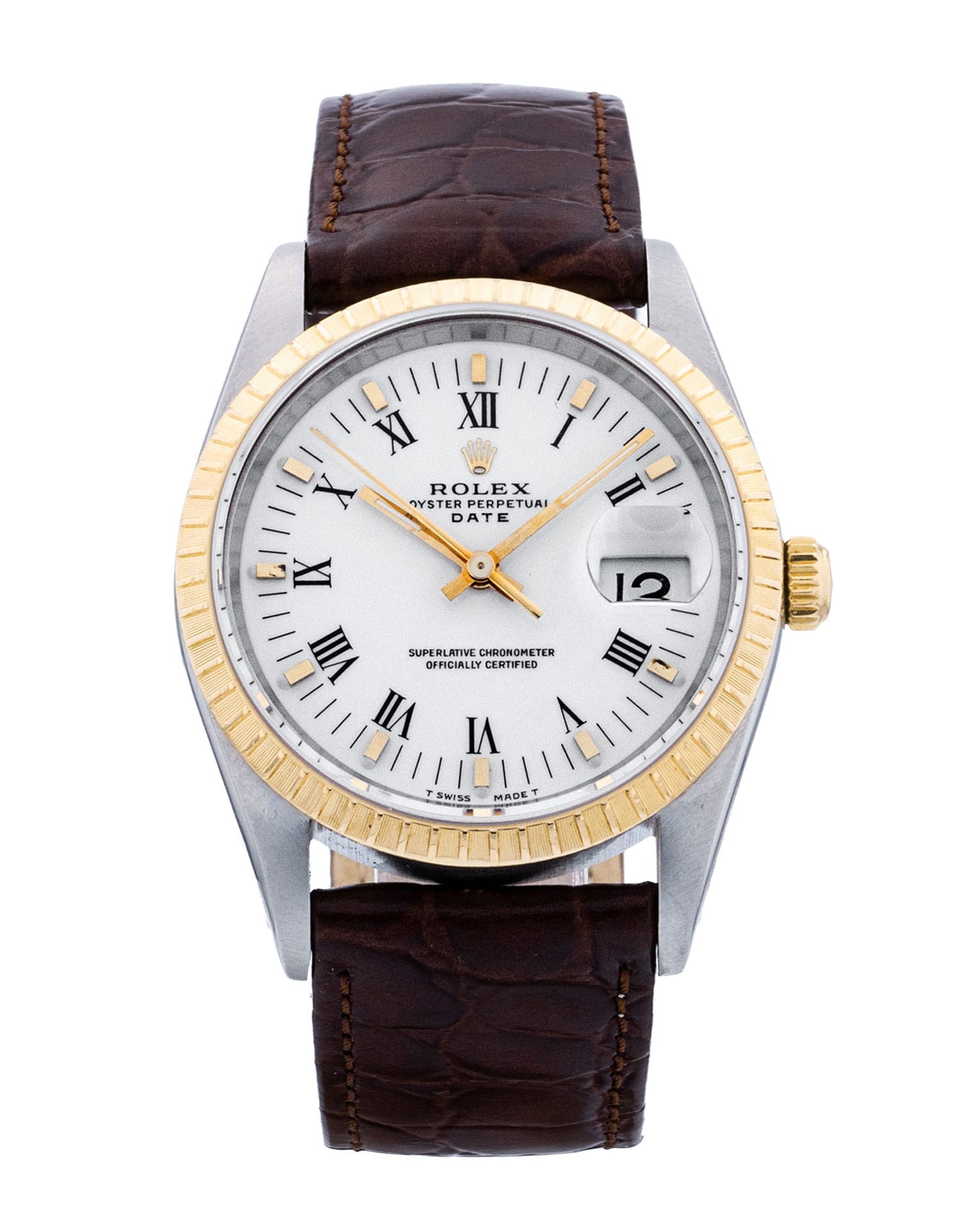Questo Rolex Oyster Perpetual Date 15223 ha un quadrante bianco numeri romani e un cinturino in pelle. Questo Rolex è stato sottoposto a un'accurata ispezione di resistenza all'acqua, precisione, funzionalità e condizioni per determinare il livello di ricondizionamento richiesto per soddisfare i nostri rigorosi standard. È stato anche referenziato rispetto a documenti tecnici e registri del produttore, ove disponibili, per garantire l'autenticità e una cronologia pulita. Tutti i nostri orologi hanno una garanzia di 24 mesi per la tua tranquillità. Uno dei nostri tecnici specializzati nella lucidatura ha rimosso i segni sulla cassa e sul bracciale di questo orologio, causati dall’usura quotidiana, motivo per cui questo orologio non viene fornito con la garanzia residua del produttore.