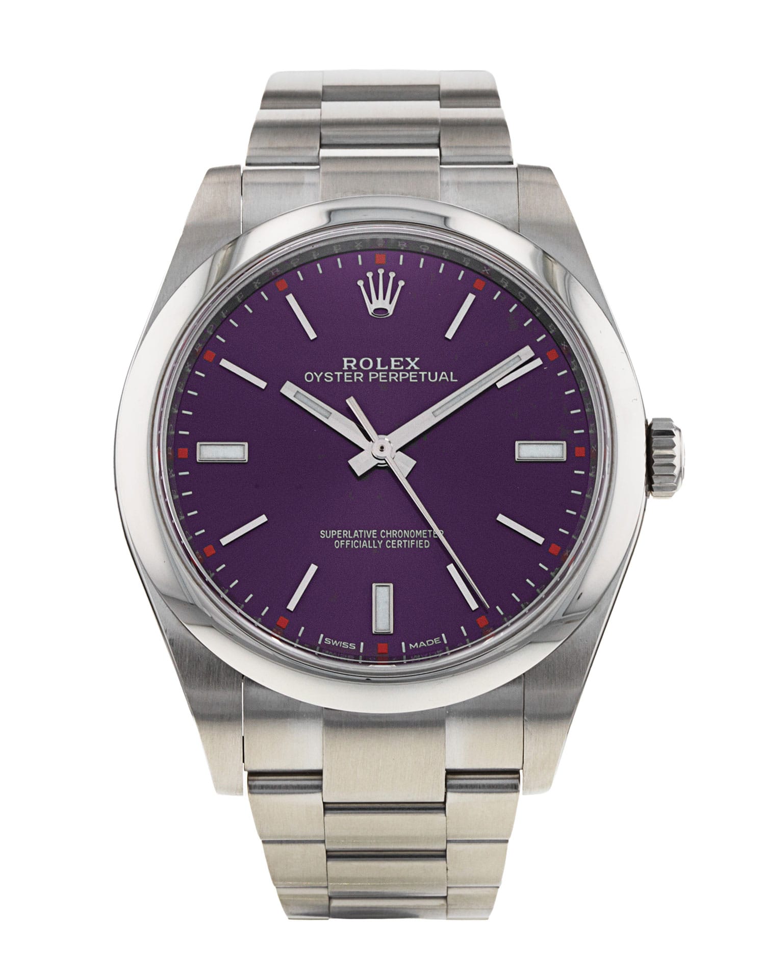 Questo Rolex Oyster Perpetual 114300 ha un quadrante red grape e un cinturino in bracciale. Questo Rolex è stato sottoposto a un'accurata ispezione di resistenza all'acqua, precisione, funzionalità e condizioni per determinare il livello di ricondizionamento richiesto per soddisfare i nostri rigorosi standard. È stato anche referenziato rispetto a documenti tecnici e registri del produttore, ove disponibili, per garantire l'autenticità e una cronologia pulita. Tutti i nostri orologi hanno una garanzia di 24 mesi per la tua tranquillità. Uno dei nostri tecnici specializzati nella lucidatura ha rimosso i segni sulla cassa e sul bracciale di questo orologio, causati dall’usura quotidiana, motivo per cui questo orologio non viene fornito con la garanzia residua del produttore.