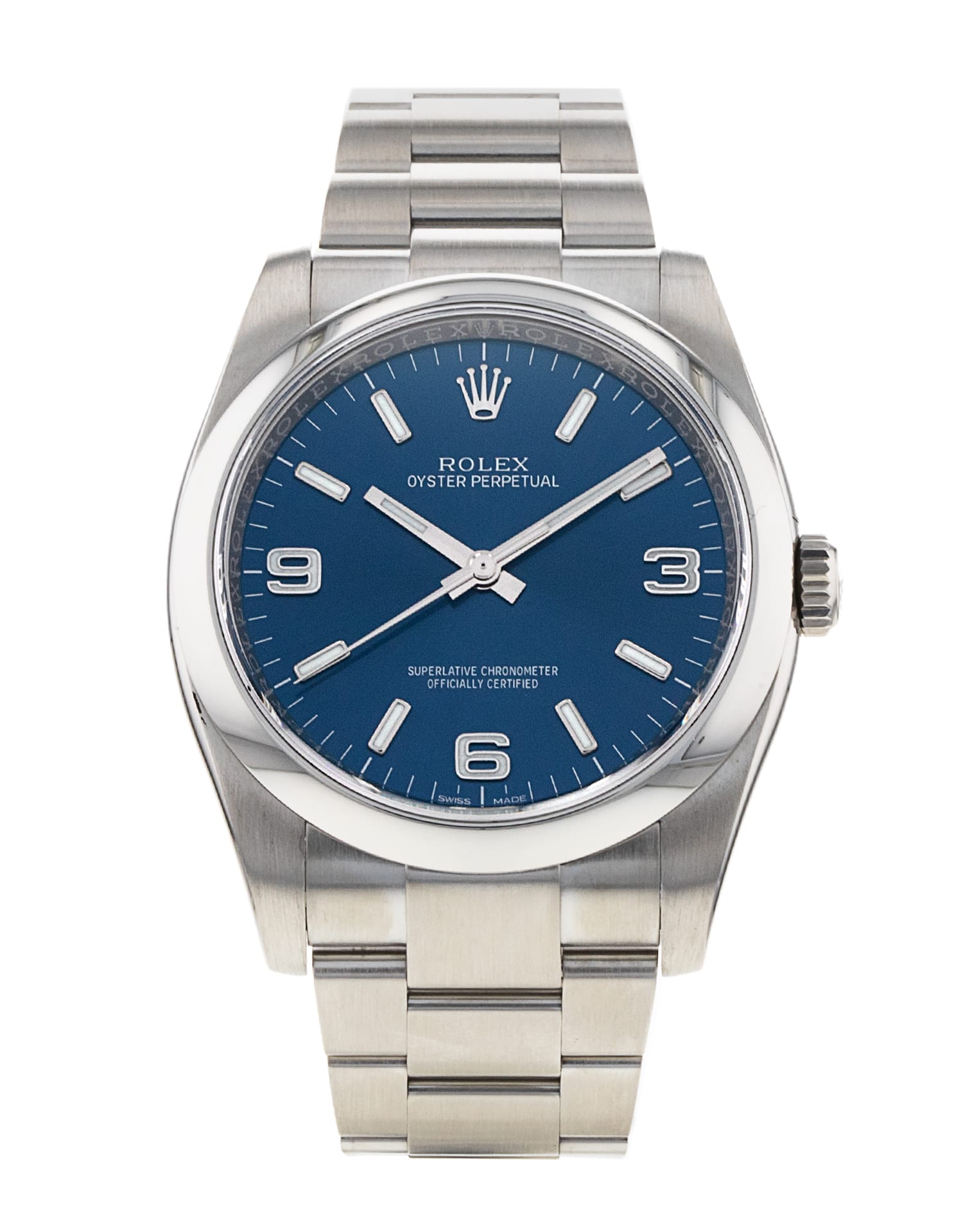 Questo Rolex Oyster Perpetual 116000 ha un quadrante blu quarter numeri arabi e un cinturino in bracciale. Questo Rolex è stato sottoposto a un'accurata ispezione di resistenza all'acqua, precisione, funzionalità e condizioni per determinare il livello di ricondizionamento richiesto per soddisfare i nostri rigorosi standard. È stato anche referenziato rispetto a documenti tecnici e registri del produttore, ove disponibili, per garantire l'autenticità e una cronologia pulita. Tutti i nostri orologi hanno una garanzia di 24 mesi per la tua tranquillità. Uno dei nostri tecnici specializzati nella lucidatura ha rimosso i segni sulla cassa e sul bracciale di questo orologio, causati dall’usura quotidiana, motivo per cui questo orologio non viene fornito con la garanzia residua del produttore.