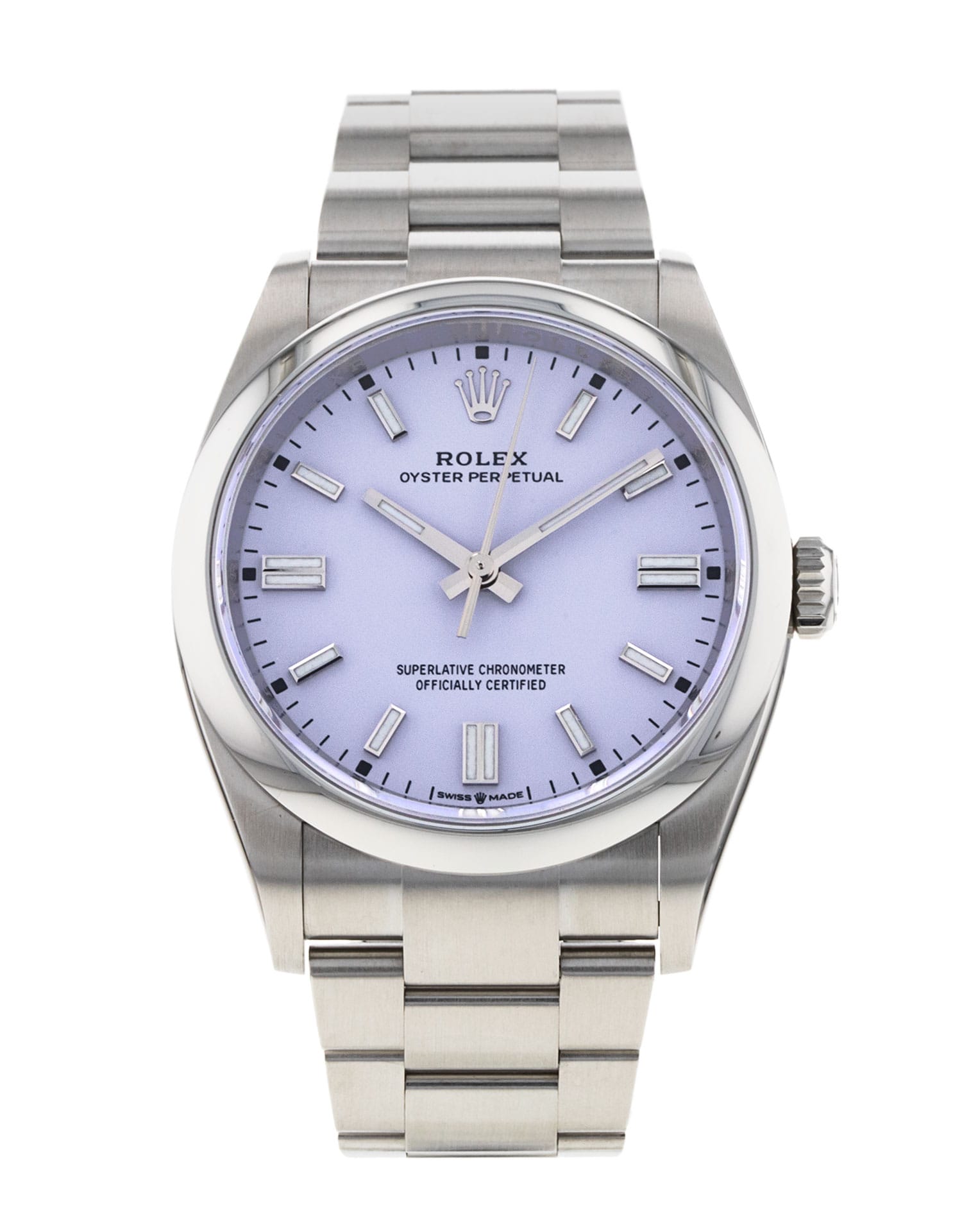 Questo Rolex Oyster Perpetual 126000 ha un quadrante lavender e un cinturino in bracciale. Questo Rolex è stato sottoposto a un'accurata ispezione di resistenza all'acqua, precisione, funzionalità e condizioni per determinare il livello di ricondizionamento richiesto per soddisfare i nostri rigorosi standard. È stato anche referenziato rispetto a documenti tecnici e registri del produttore, ove disponibili, per garantire l'autenticità e una cronologia pulita. I nostri orologi hanno una garanzia di 24 mesi per vostra maggior tranquillità contestualmente a eventuali garanzie residue del produttore derivate dal nuovo o dalla manutenzione. Per mantenere la garanzia del produttore su questo prodotto, l’orologio non è stato lucidato nel nostro centro di assistenza.