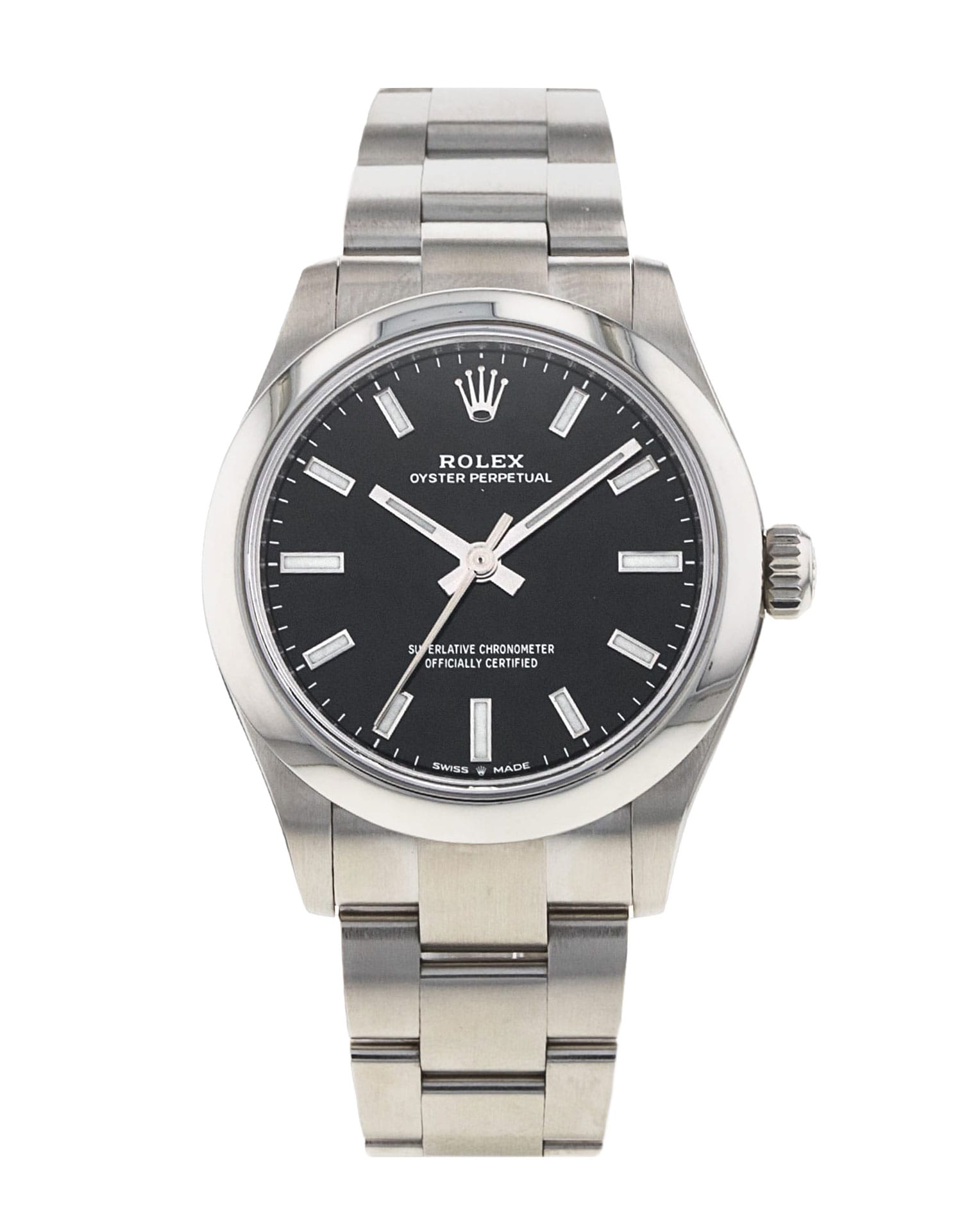 Questo Rolex Oyster Perpetual 277200 ha un quadrante nero baton e un cinturino in bracciale. Questo Rolex è stato sottoposto a un'accurata ispezione di resistenza all'acqua, precisione, funzionalità e condizioni per determinare il livello di ricondizionamento richiesto per soddisfare i nostri rigorosi standard. È stato anche referenziato rispetto a documenti tecnici e registri del produttore, ove disponibili, per garantire l'autenticità e una cronologia pulita. Tutti i nostri orologi hanno una garanzia di 24 mesi per la tua tranquillità. Uno dei nostri tecnici specializzati nella lucidatura ha rimosso i segni sulla cassa e sul bracciale di questo orologio, causati dall’usura quotidiana, motivo per cui questo orologio non viene fornito con la garanzia residua del produttore.